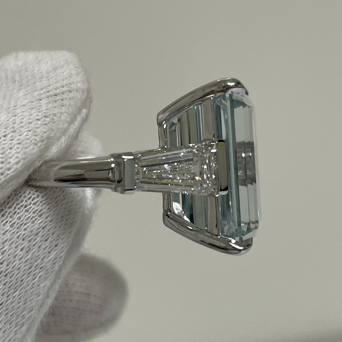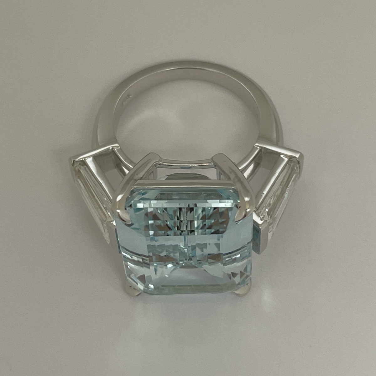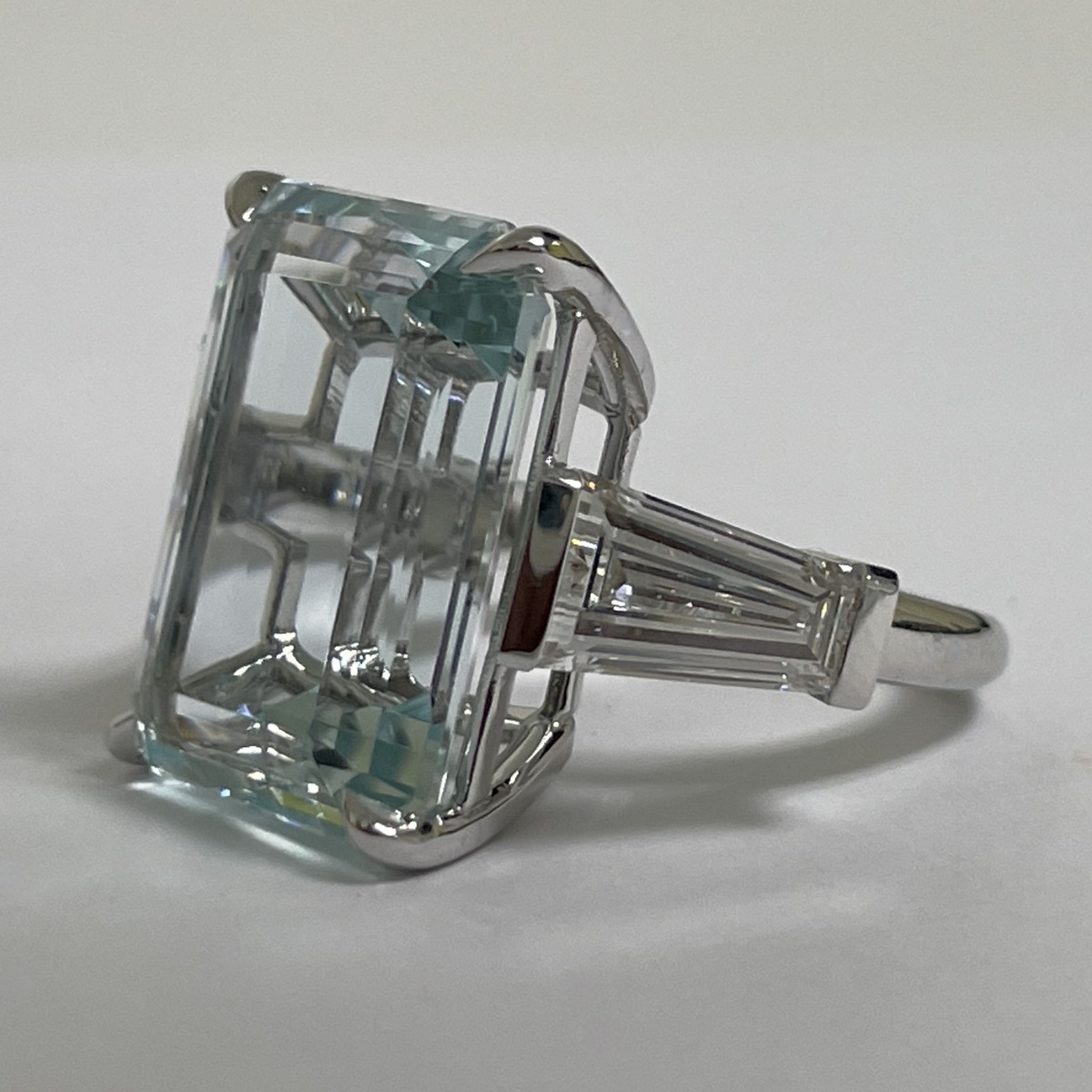 Tags 14k White Gold, Aquamarine, Art Deco, Cocktail, Diamond, gemstone, One-Of-A-Kind, Tapered Baguettes