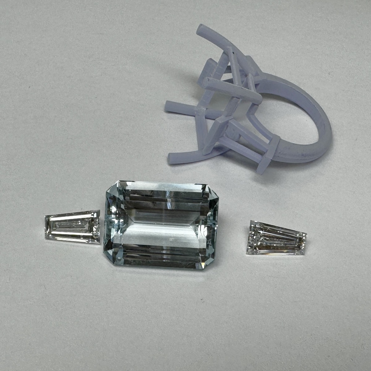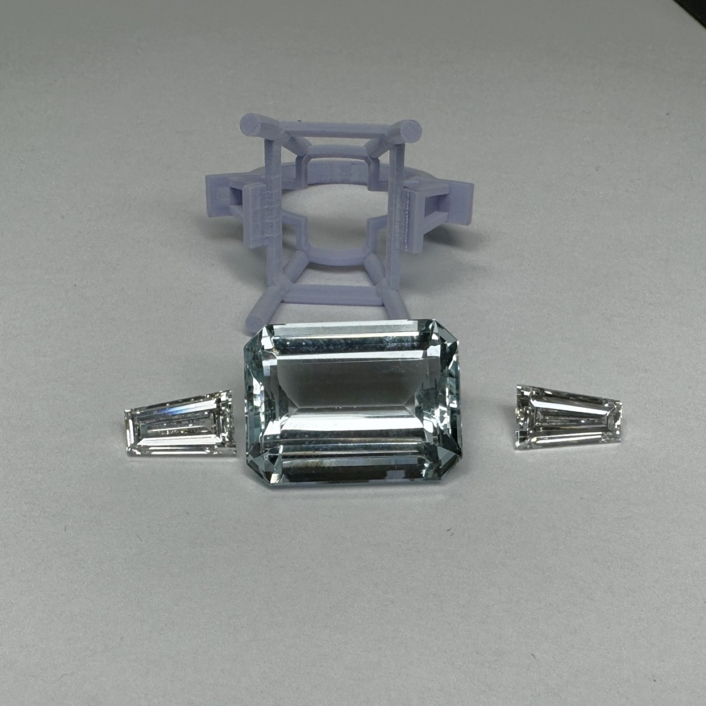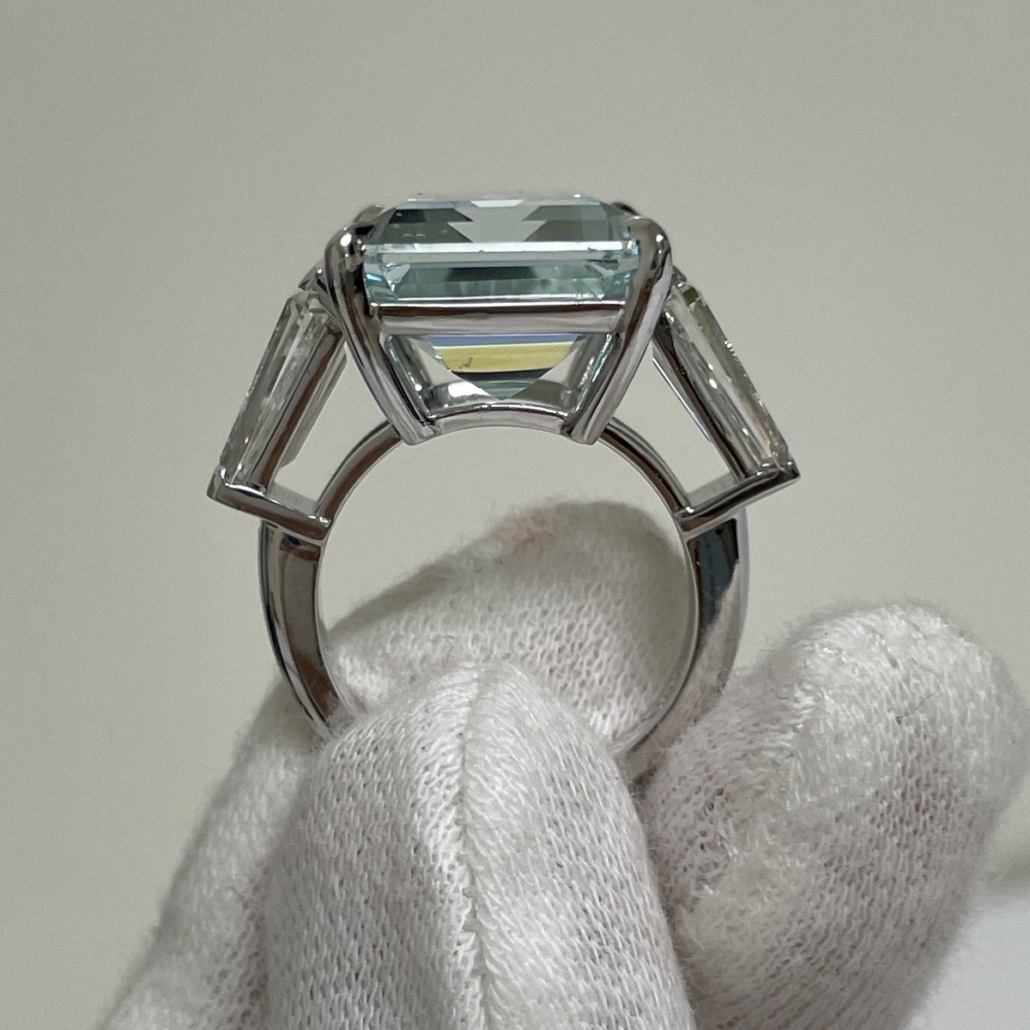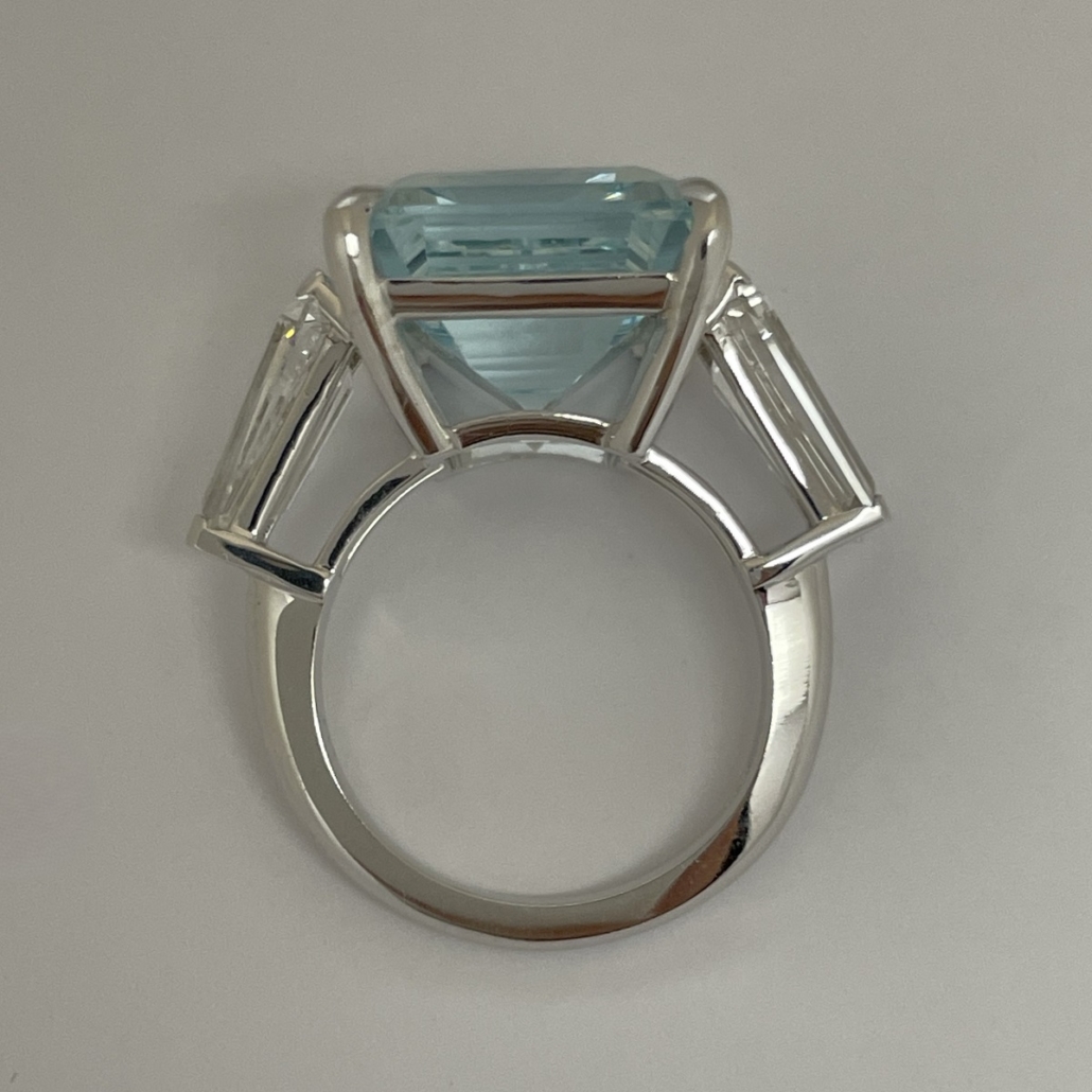 Tags 14k White Gold, Aquamarine, Art Deco, Cocktail, Diamond, gemstone, One-Of-A-Kind, Tapered Baguettes