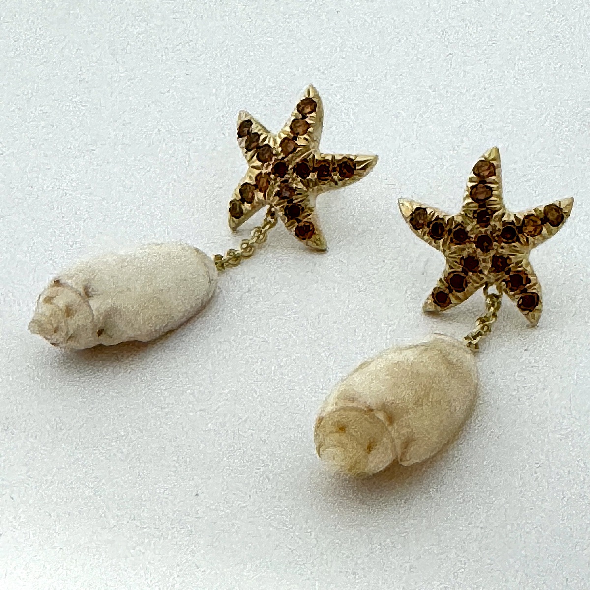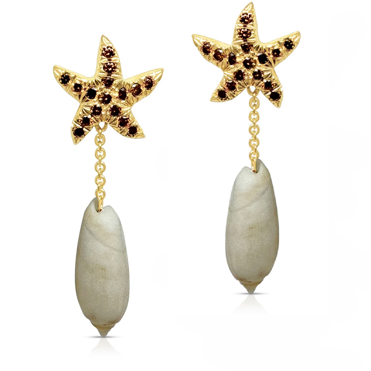 Celebrate the allure of the sea with these enchanting starfish earrings, crafted in glowing yellow gold and adorned with rich cognac diamonds.