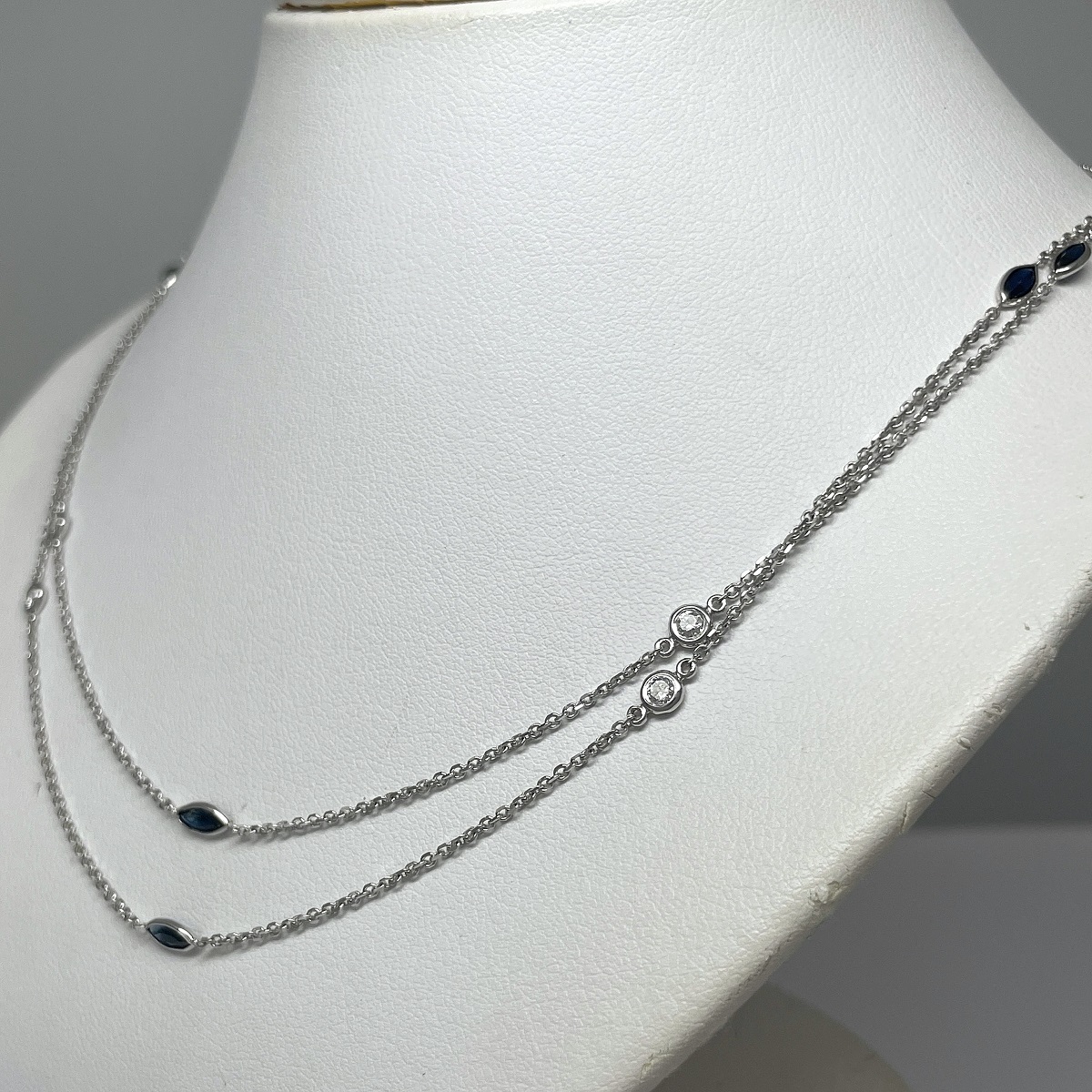 Tags 14k White, Diamond, Necklace, One-Of-A-Kind, Sapphire, Stone On Chain