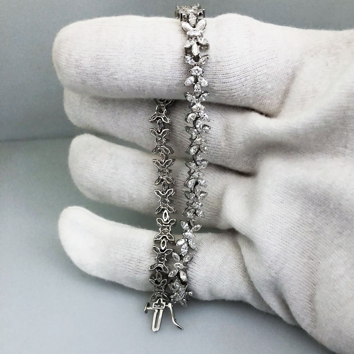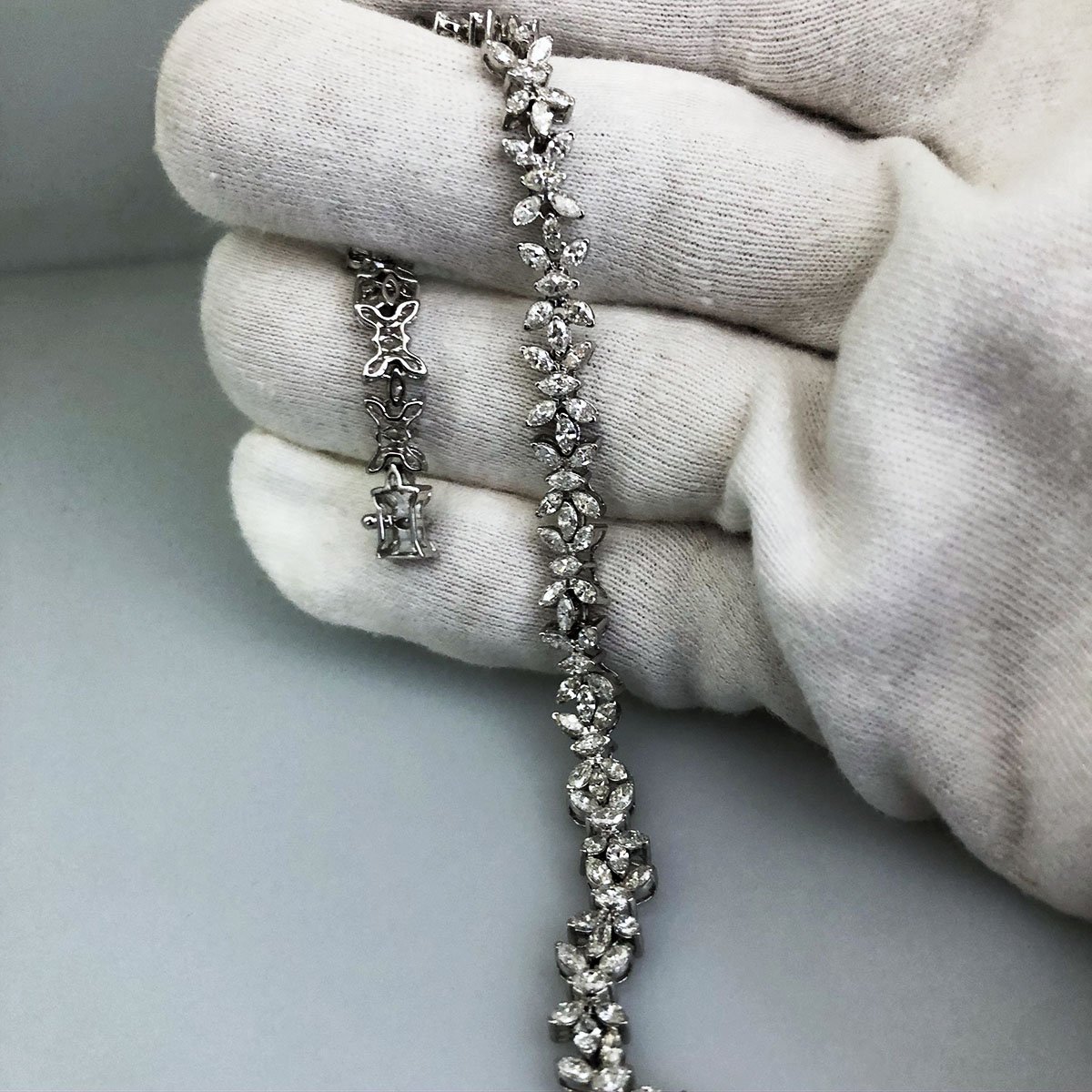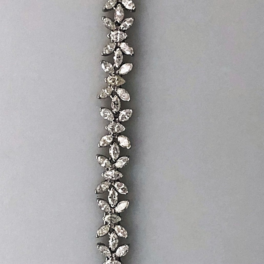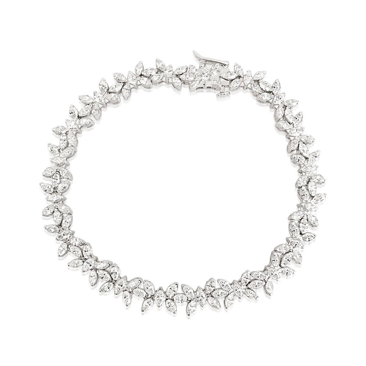 Marquise cut diamonds form a feminine floral design in this one of a kind sparkling bracelet.