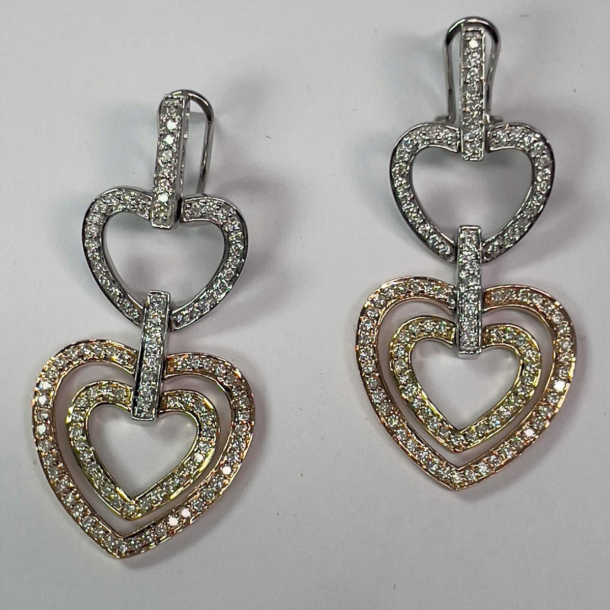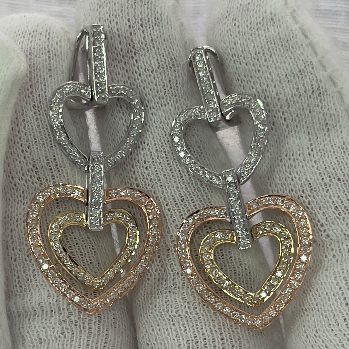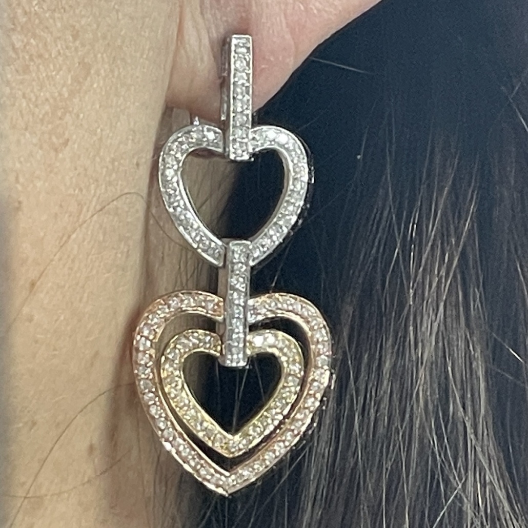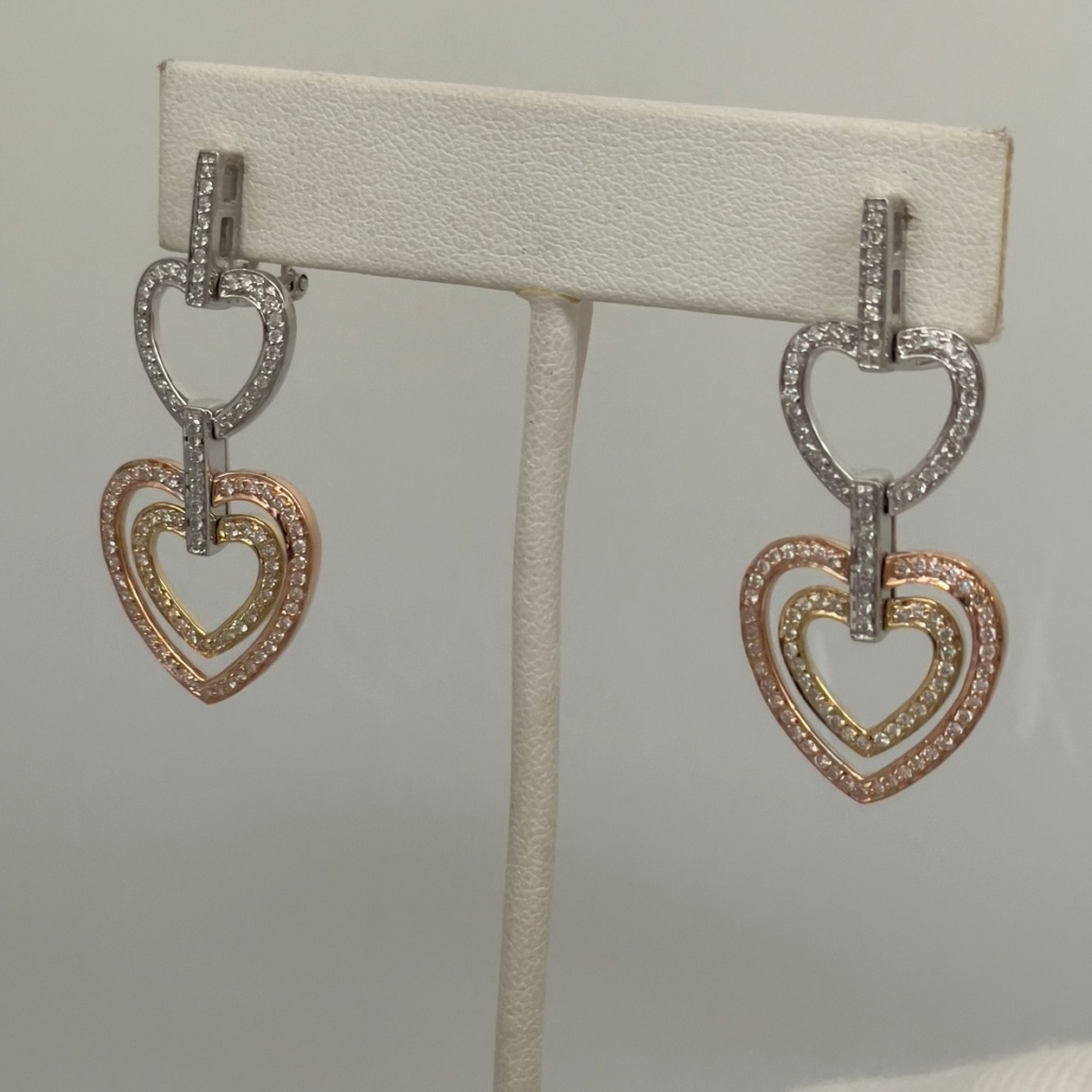 Tags 3 Tone Dangle Earrings, 3 Tone Hoop Earrings, Dangle Hoop Earrings, Diamond Dangle Hoop Earrings, Diamond Dangle Hoops, Diamond Heart Earrings, Diamond Heart Shape Earrings, Diamond Hoops, Heart Hoop Diamond Earrings, Heart Shape Dangle Earrings, Heart Shape Earrings