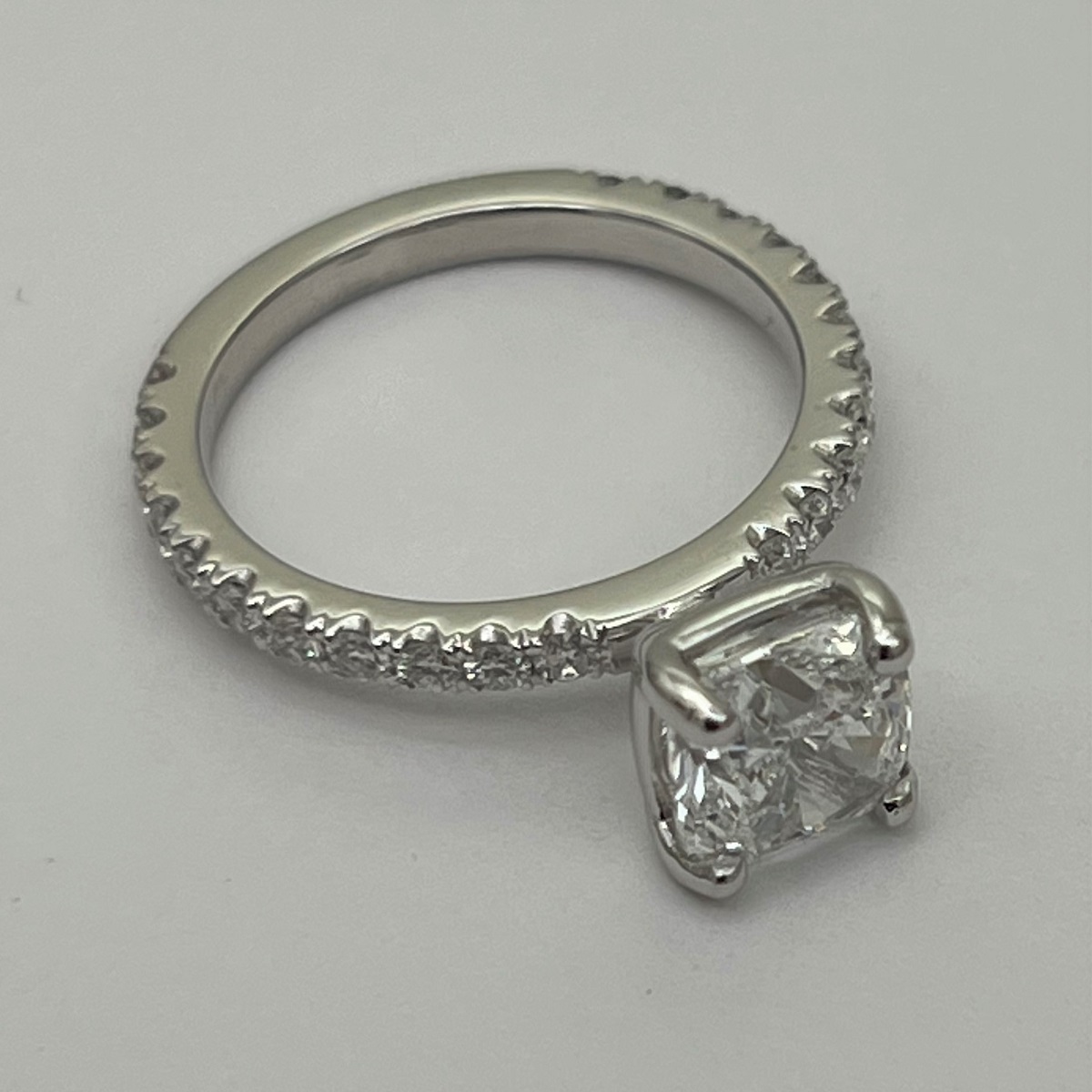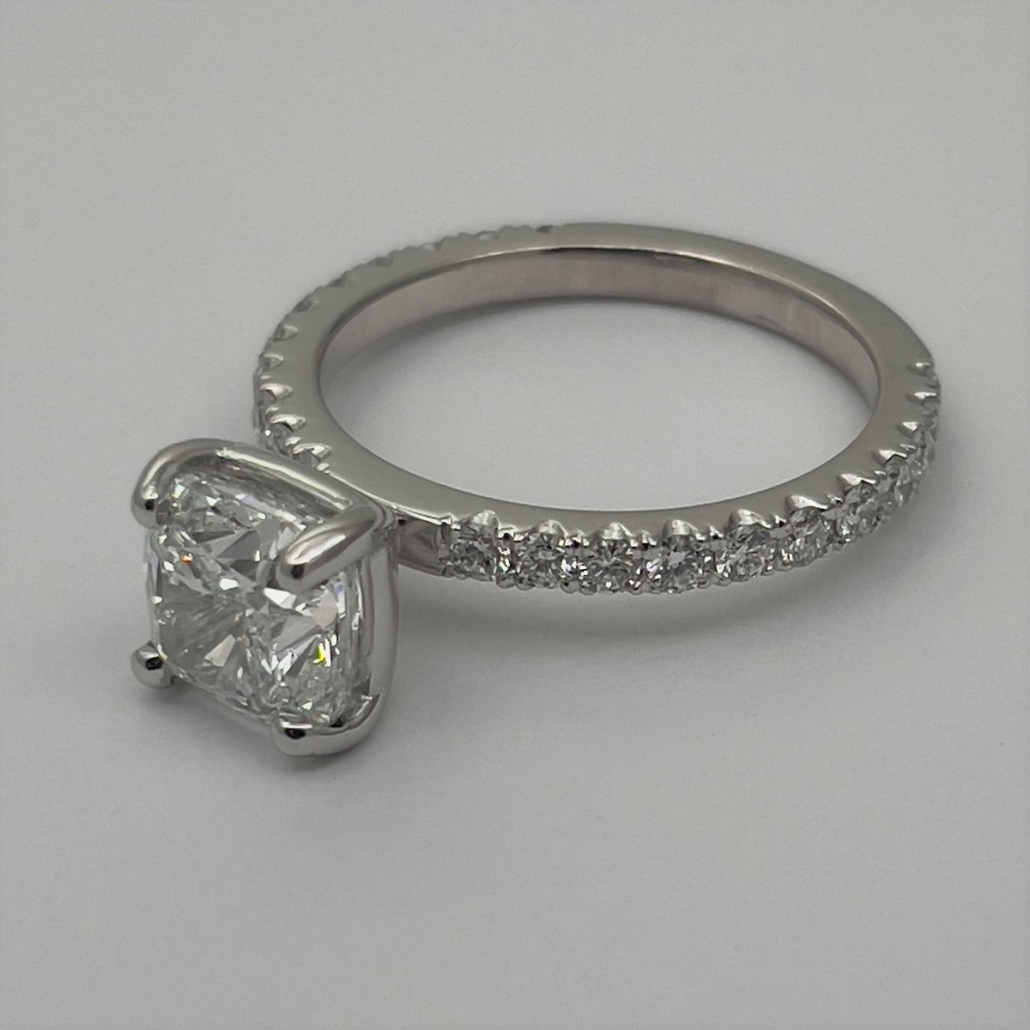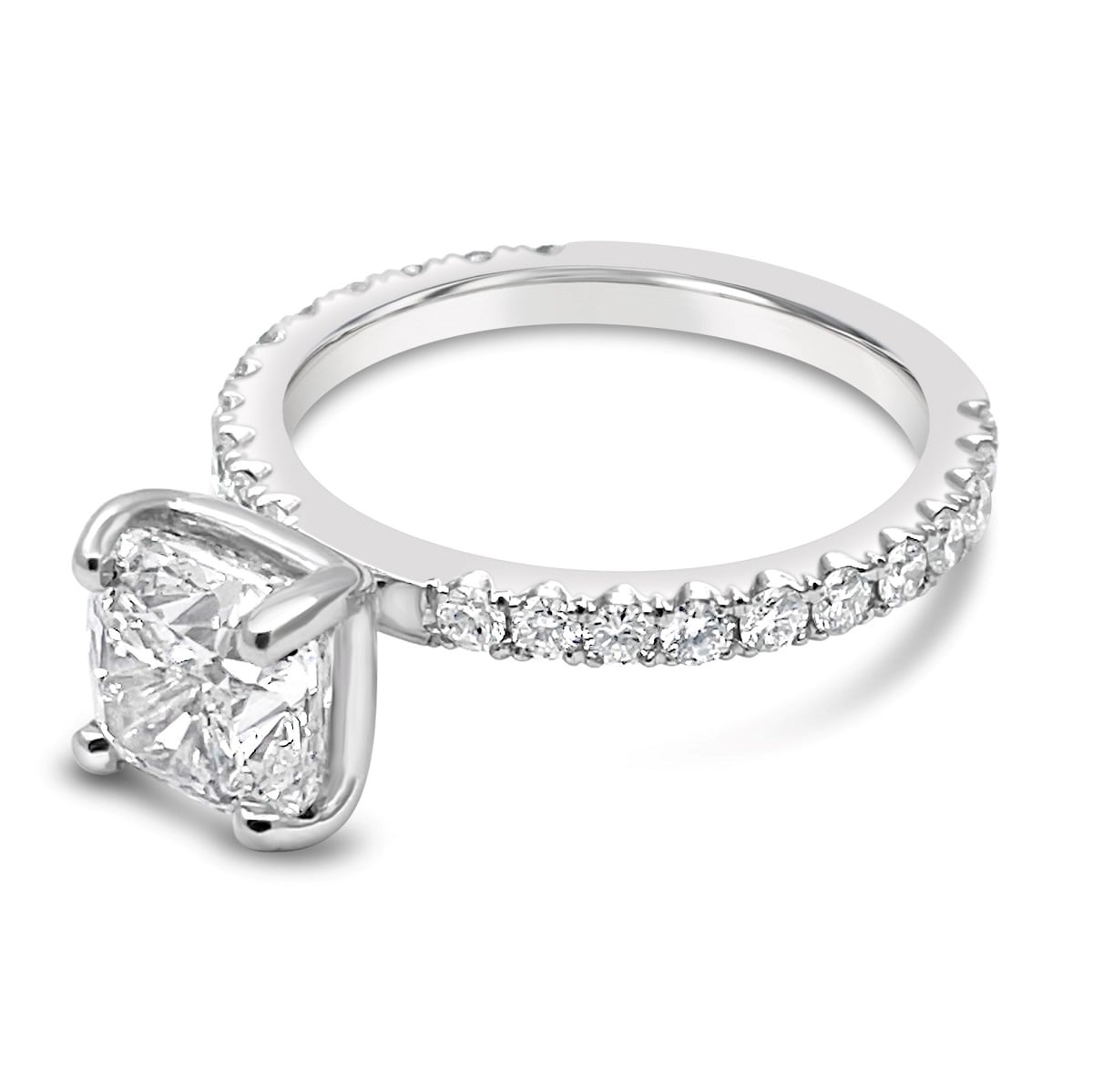 Tags Cushion Cut Ring, Custom Made Ring, diamond ring, Engagement Ring, Latest Engagement Ring, Multi Stone Ring, Platinum Ring