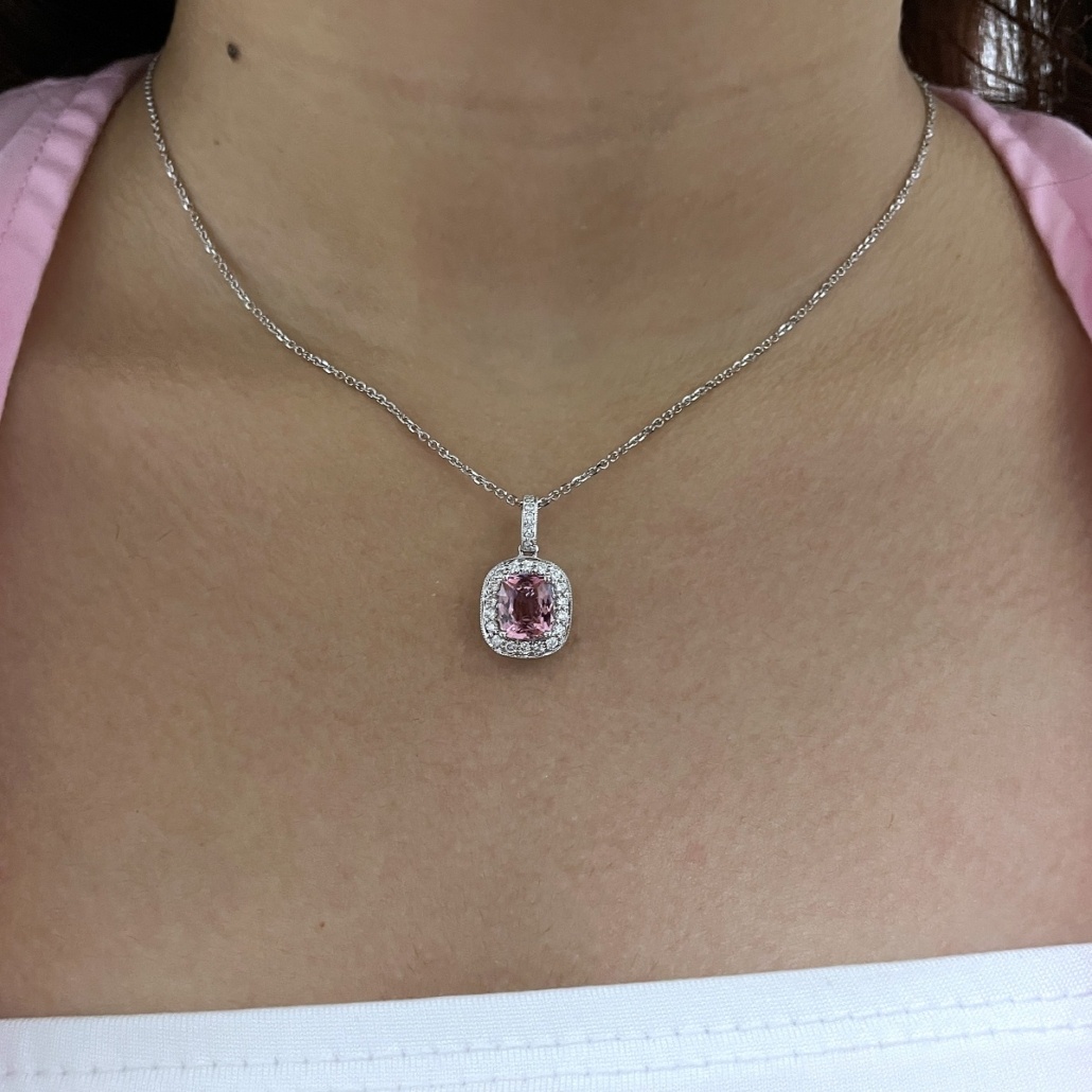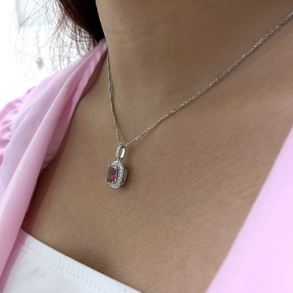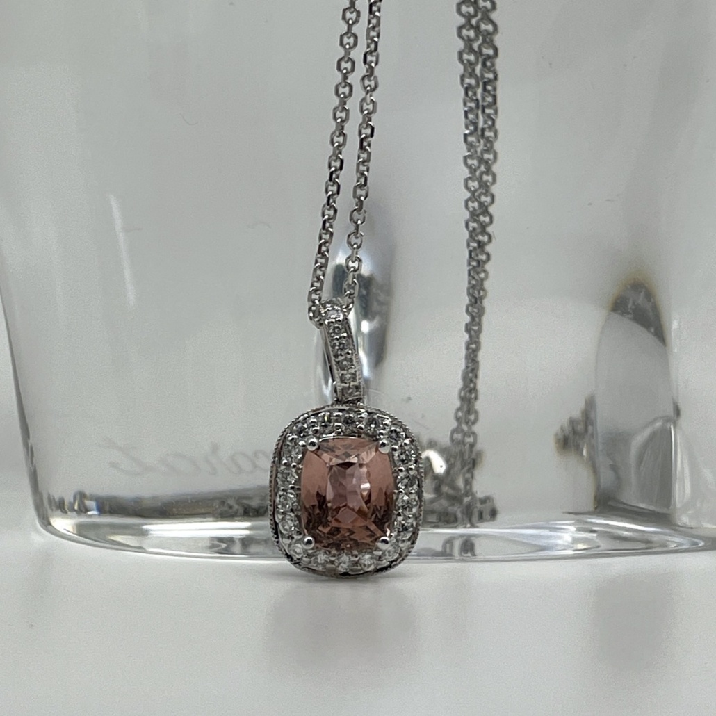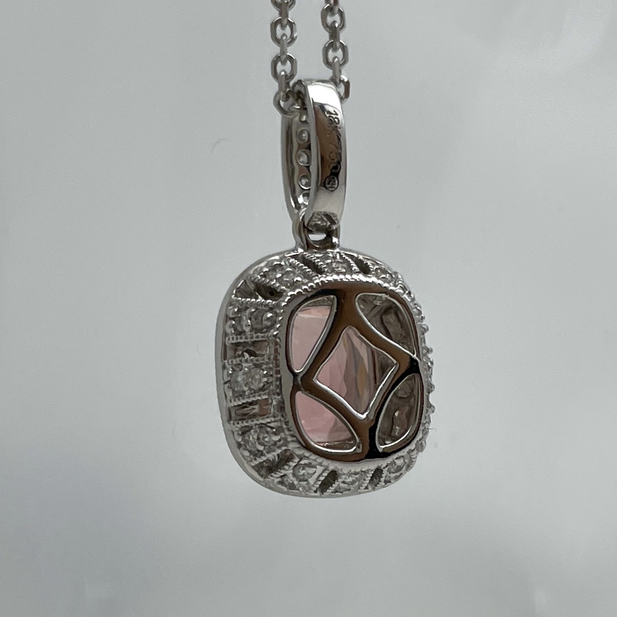 Tags 18k White, Bail, Basket Setting, Cluster, Cushion Cut, Desire, Diamond, Diamond Cut Cable, gemstone, Halo, Pendant, Pink, Tourmaline