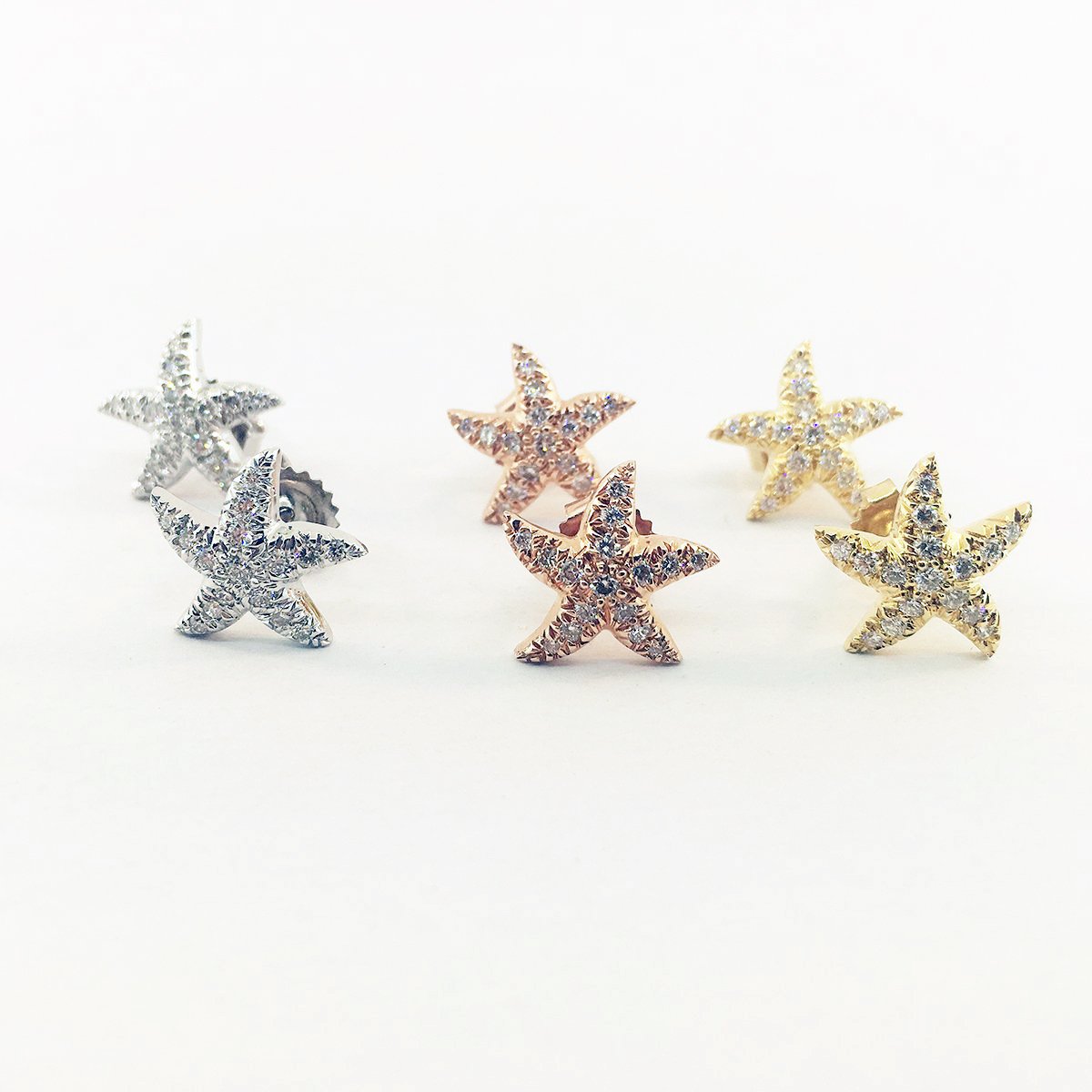 Tags Beach Lovers Earrings, Diamond Starfish Earrings, Fine Jewelry, Fine Jewelry for Beach Lovers, Perfect for Tropical Vacation, Pink Gold Starfish Earrings, Starfish, Sun and Surf
