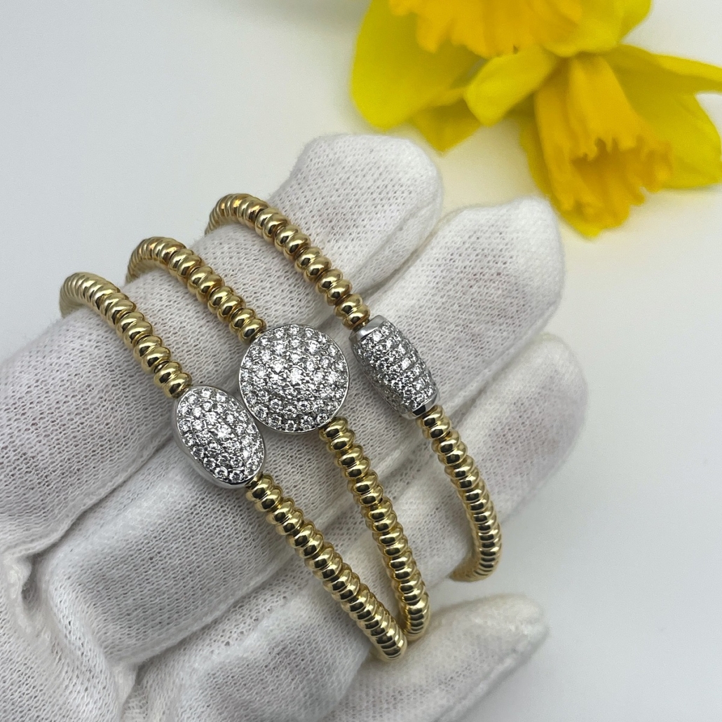 Tags 18k Yellow, Bangle, Bracelet, Cluster, Diamond, Flexible
