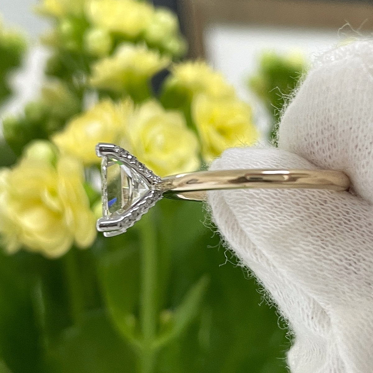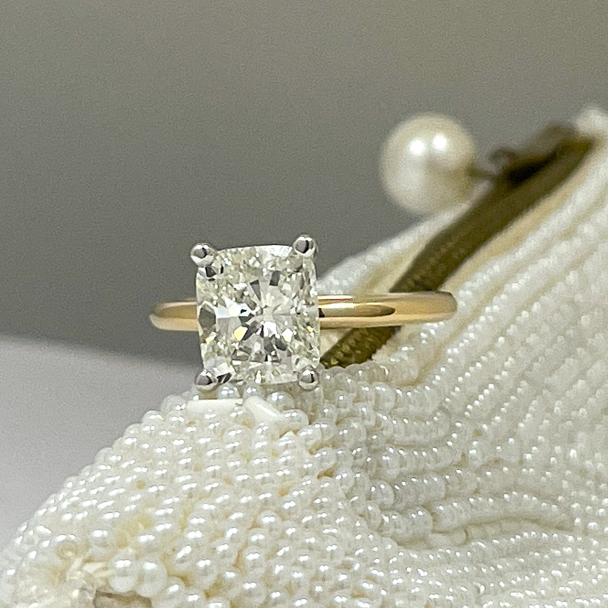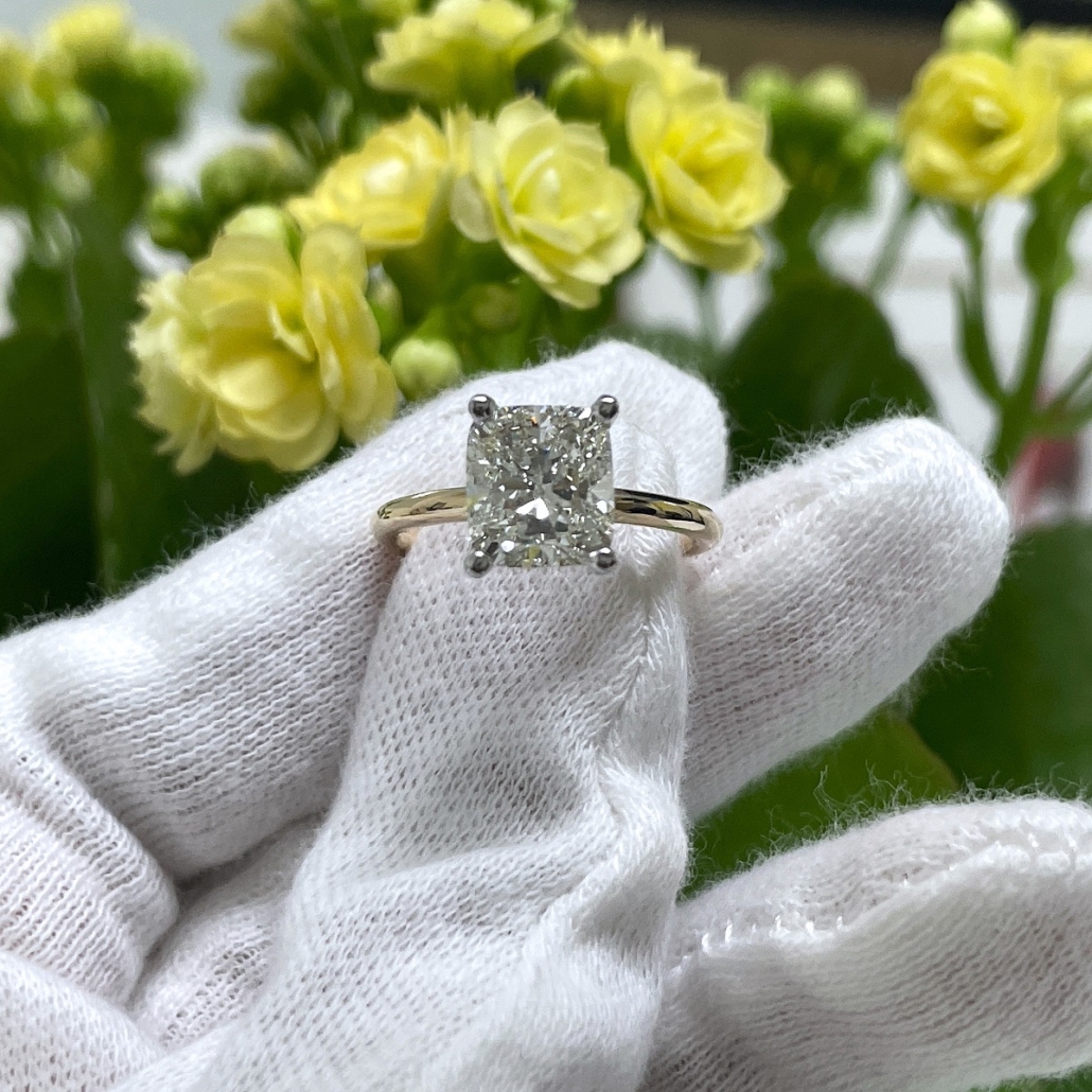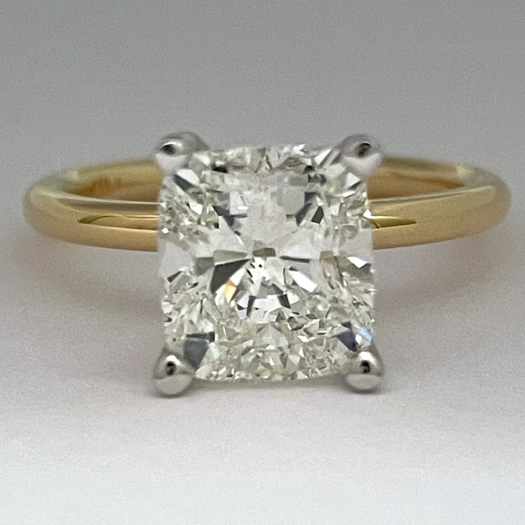 Tags 14k Yellow, Cushion Cut, Diamond, Engagement Ring, Hidden Stones, Platinum, solitaire