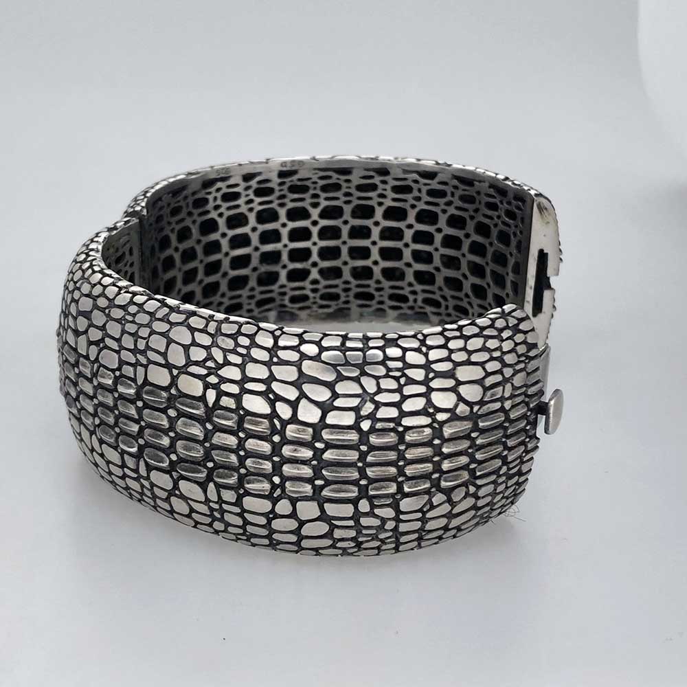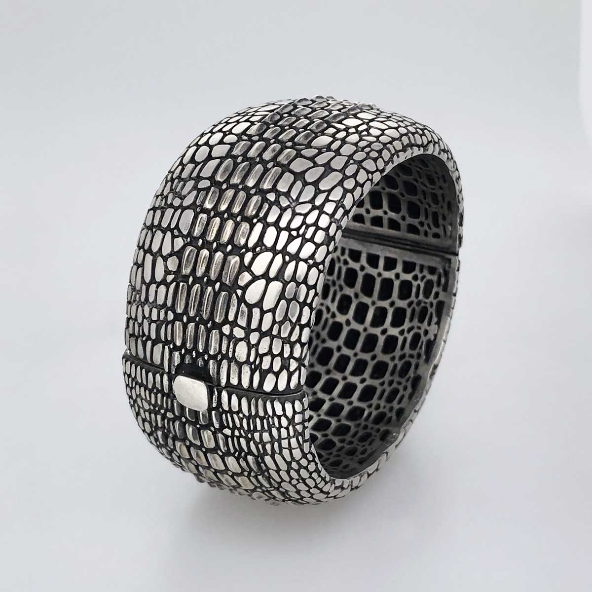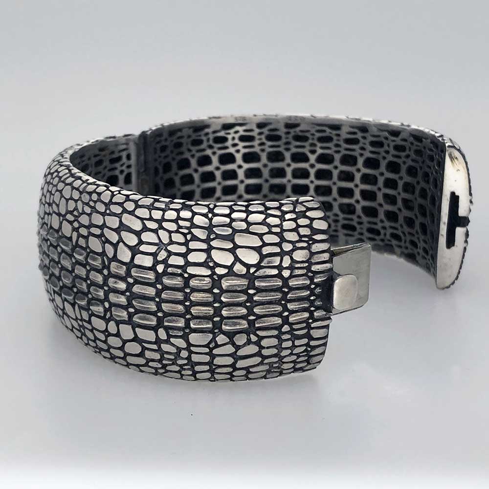 Tags Contemporary Cuff Bracelet, One of A Kind Enamel, One-Of-A-Kind, Reptile Print Enamel, Silver