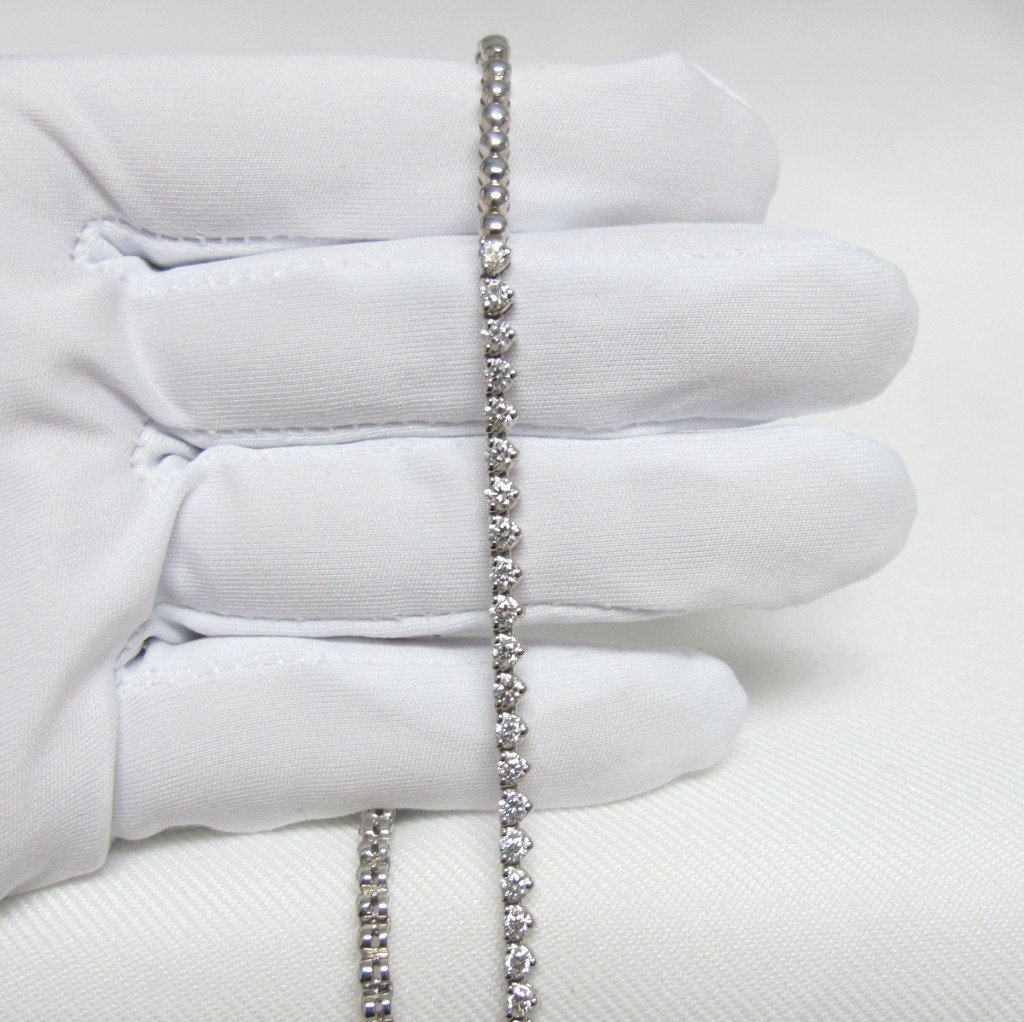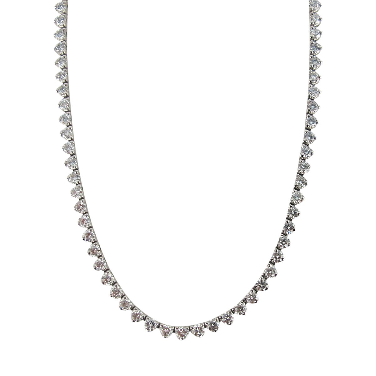 This necklace is 14k plumb white gold and contains ninety natural round brilliant diamonds that have a combined total weight of 6.80carats. Each stone is 2.7mm.