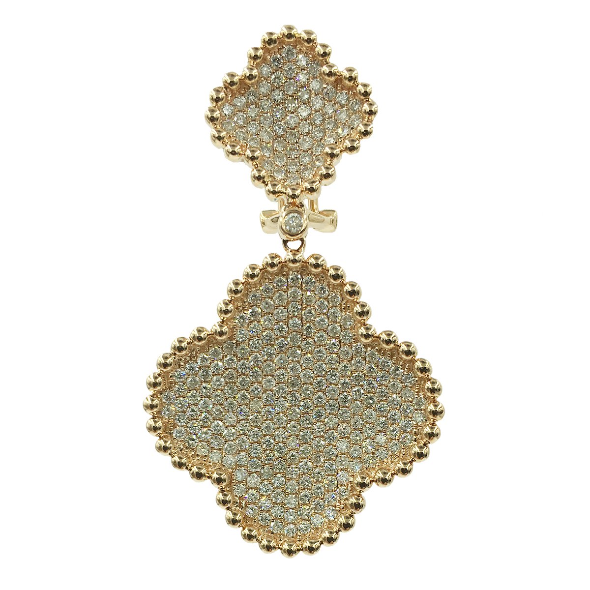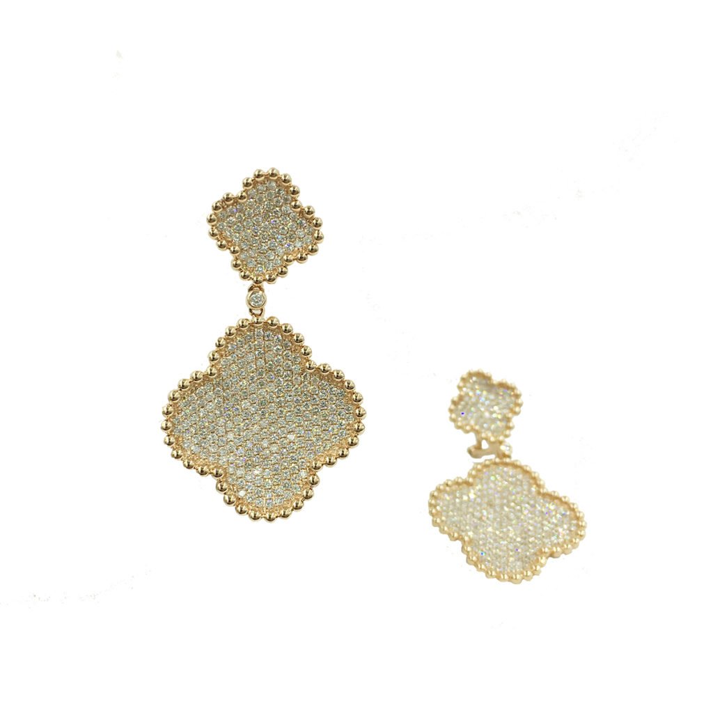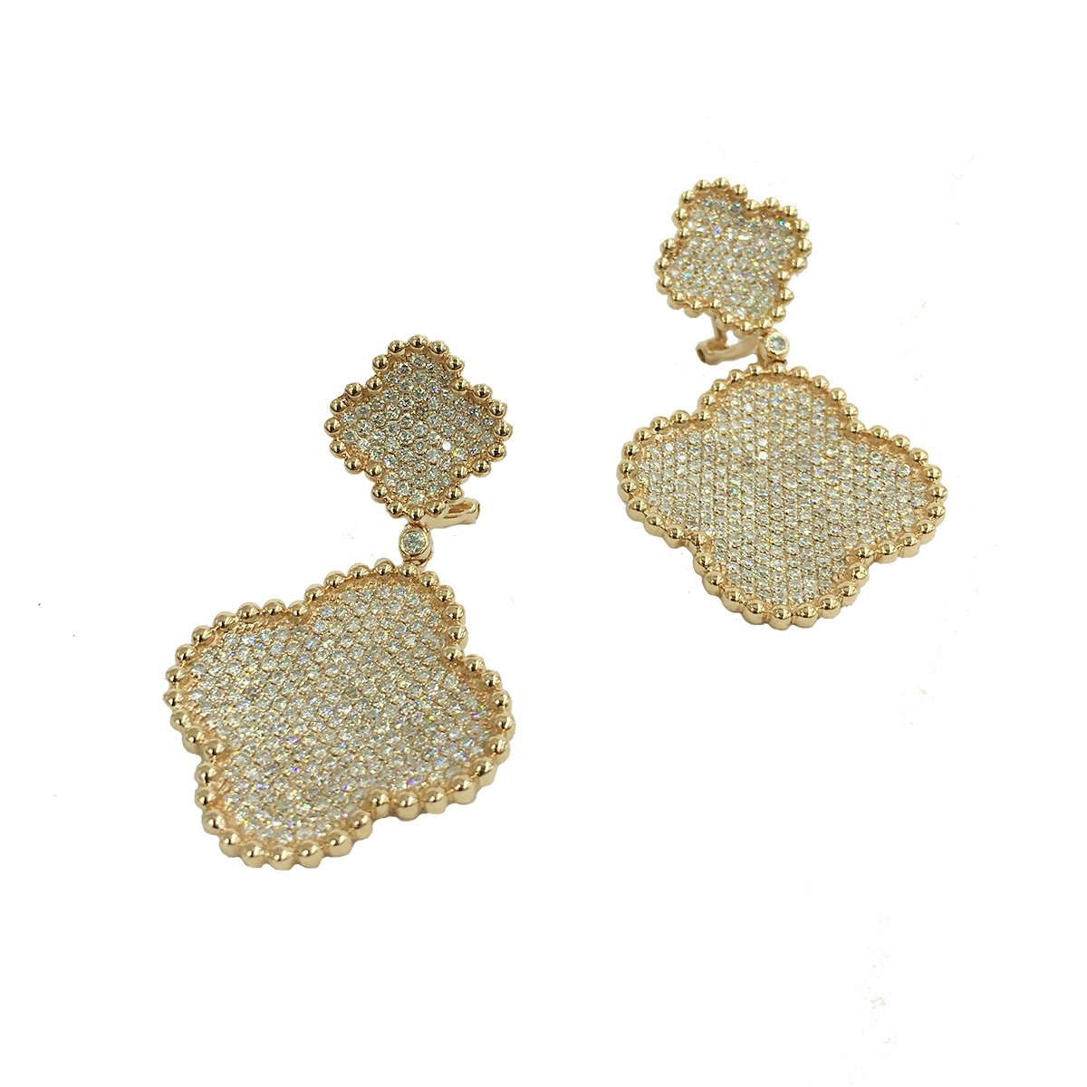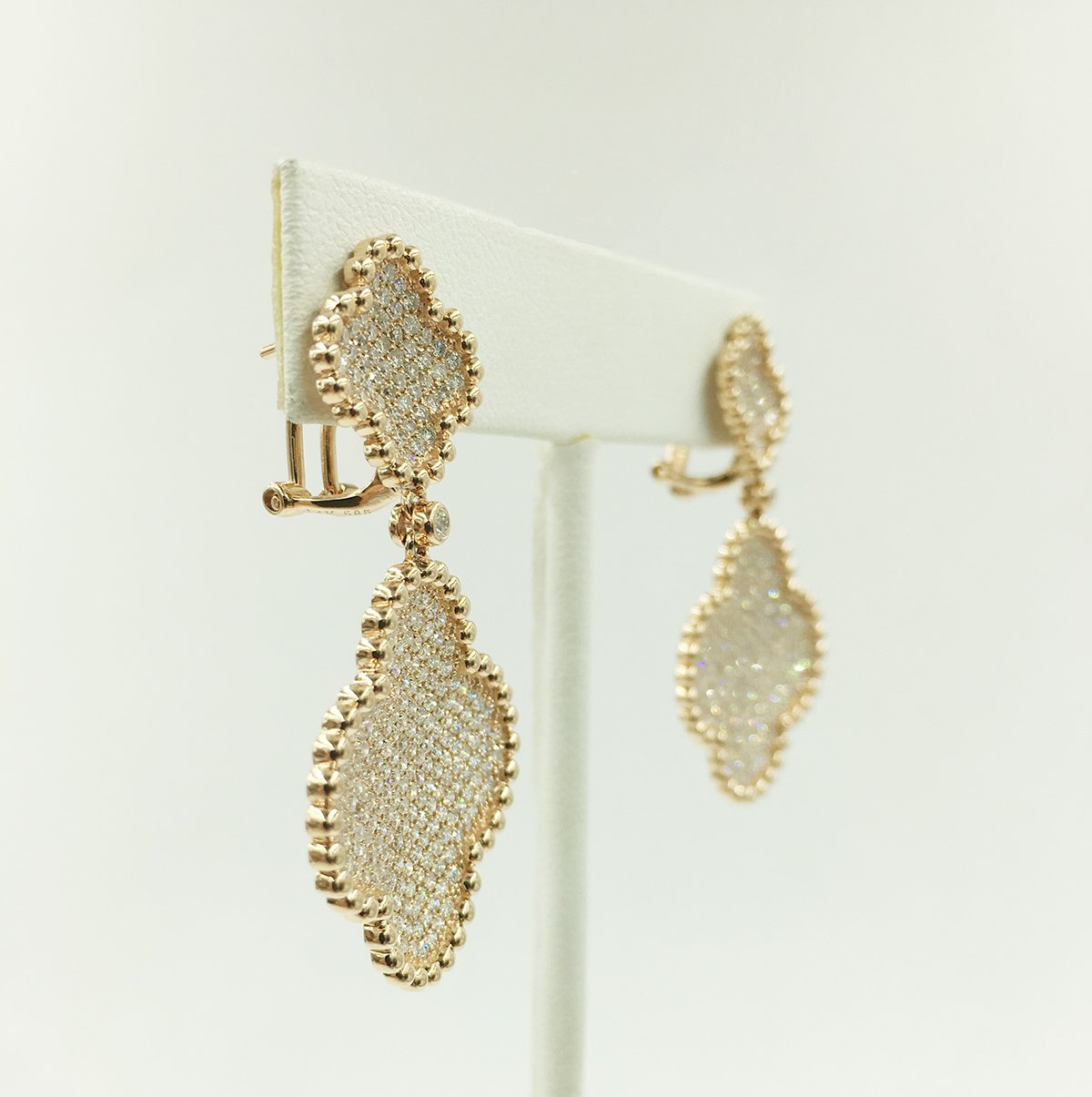 These shimmering clover shaped earrings are crafted in precious 18K rose gold and sparkling pave set diamonds.