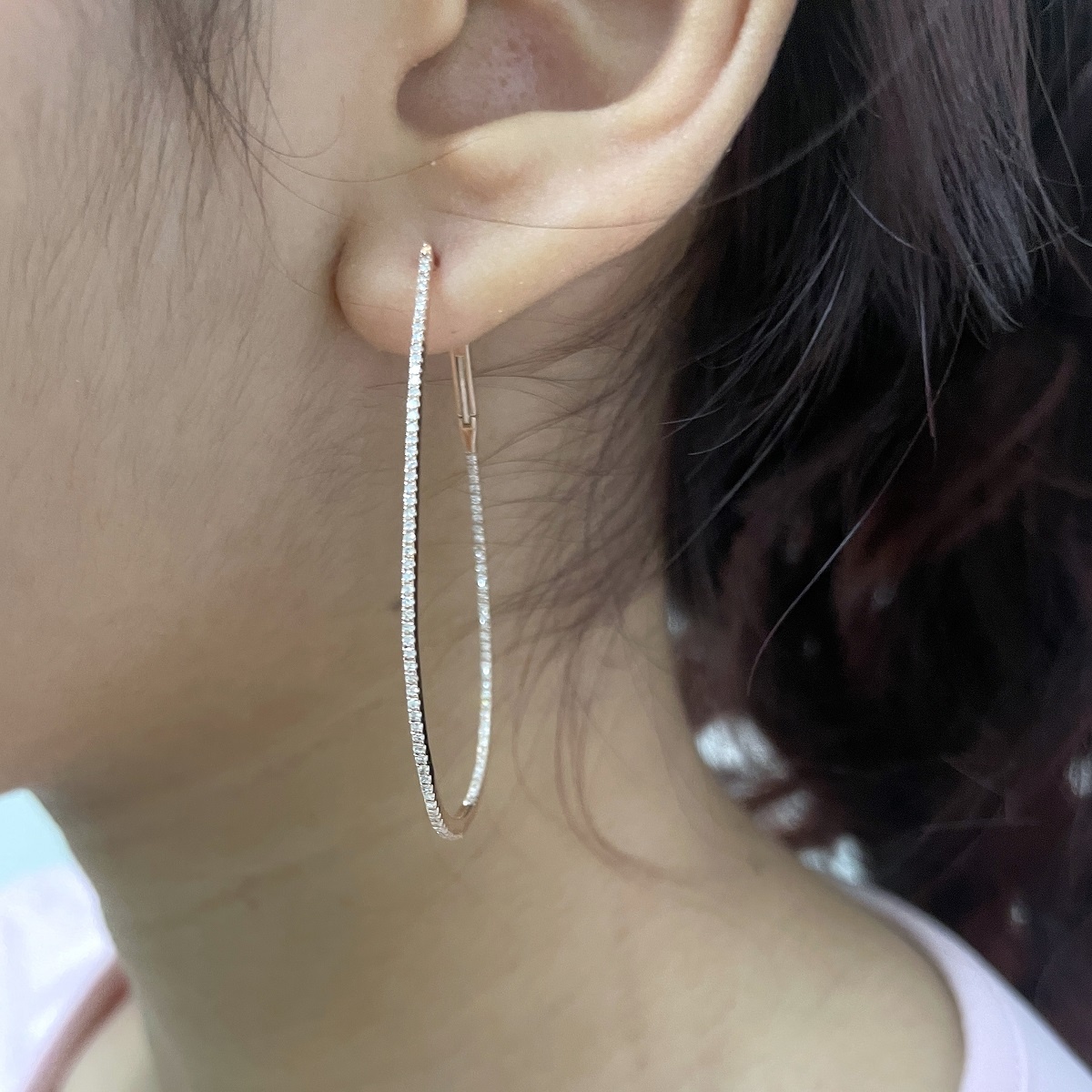Categories 14K Pink, Custom Design, Custom Earring Not Avail, Diamond Earrings, Diamond Hoop Earrings, Diamonds, Earrings, Fine Jewelry, Gemstones, Hoops, Master Earring, Master Stone, Metal Type, Rose Gold