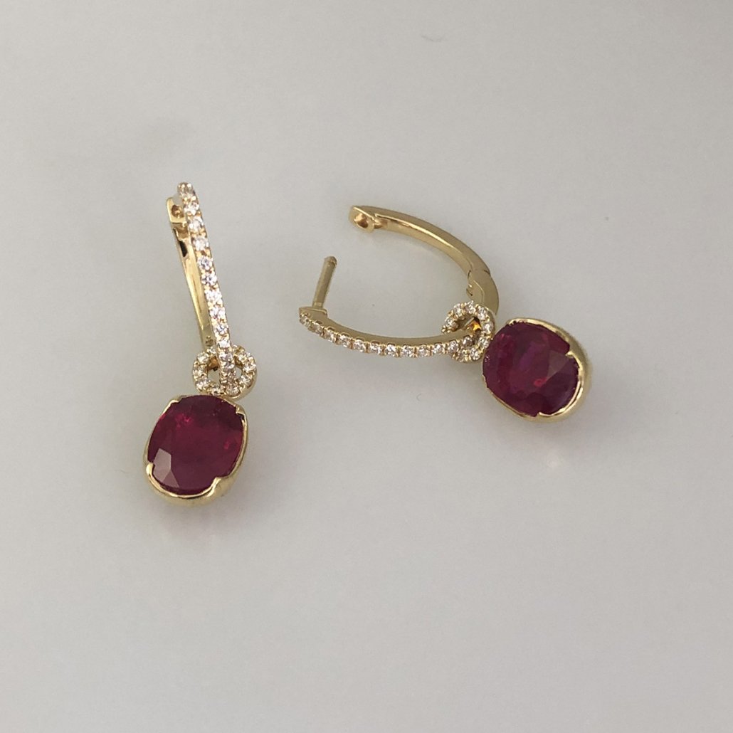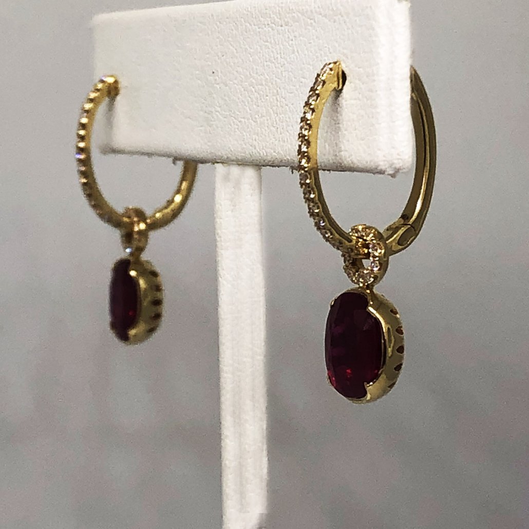 Categories 18K Yellow, Dangles, Earrings, Fine Jewelry, Gemstone Earrings, Gemstones, Master Earring, Master Stone, Master Stone 2, Ruby, Yellow Gold