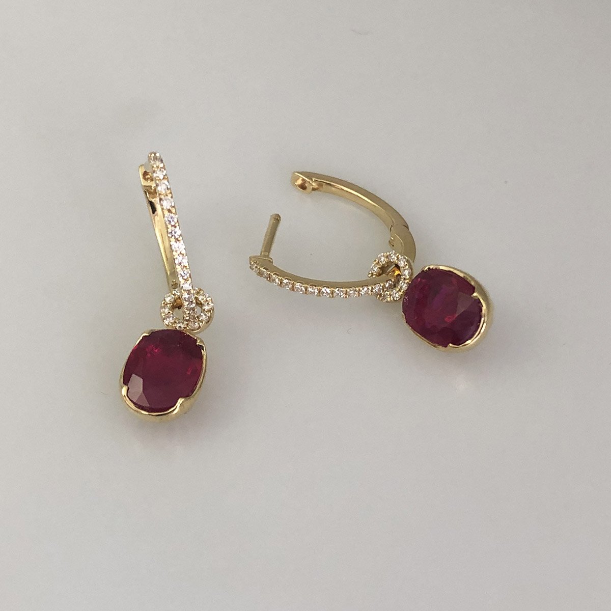 The intense red of the ruby is perfectly complemented by diamonds and the warmth of yellow gold in these stunning earrings.