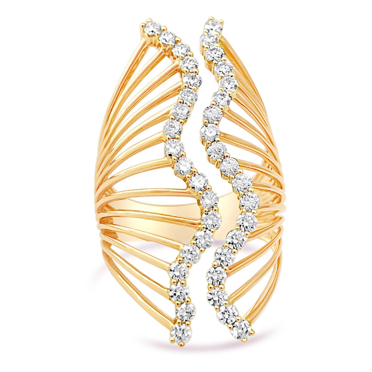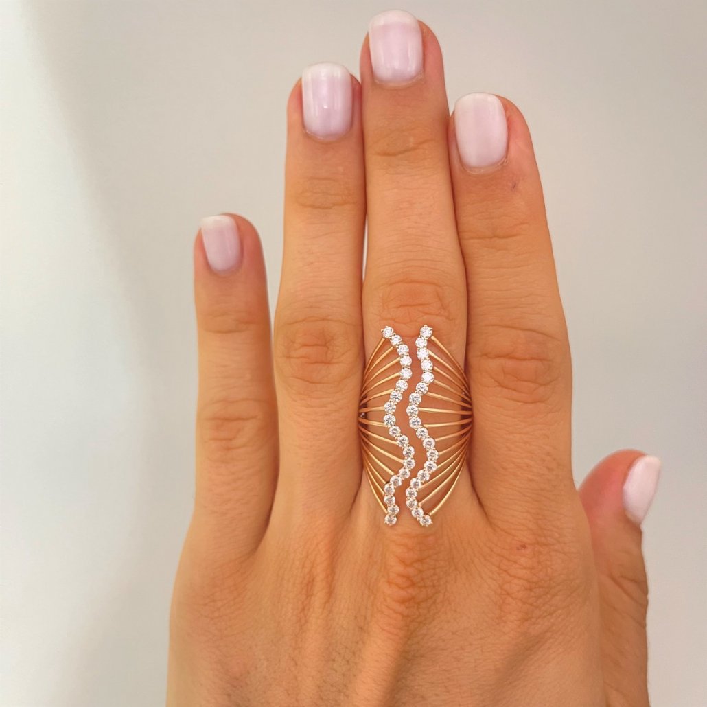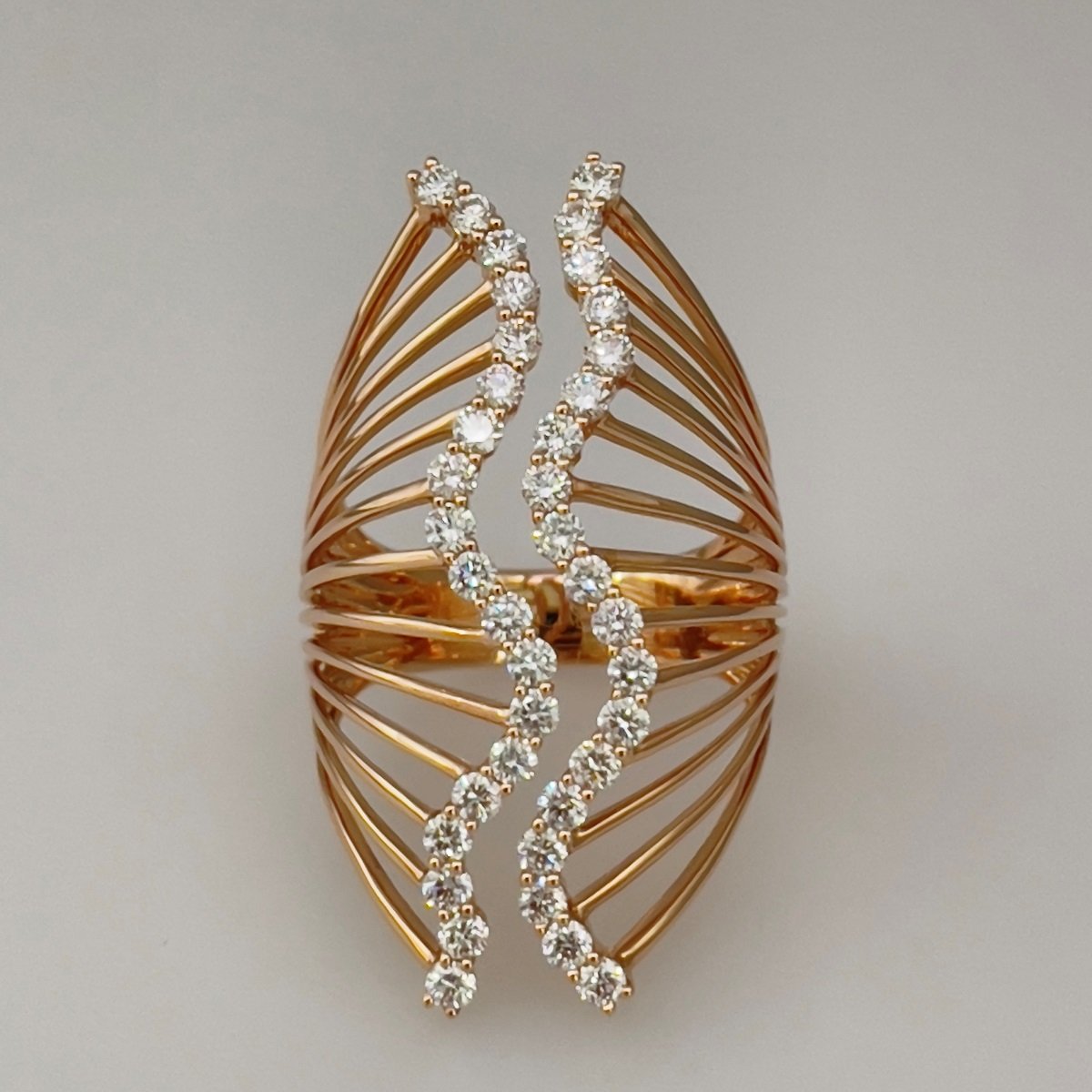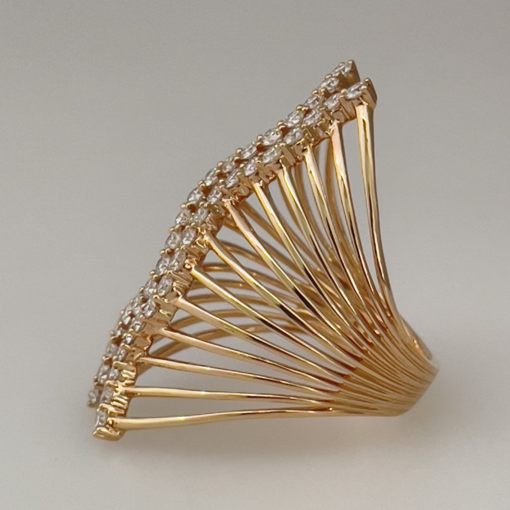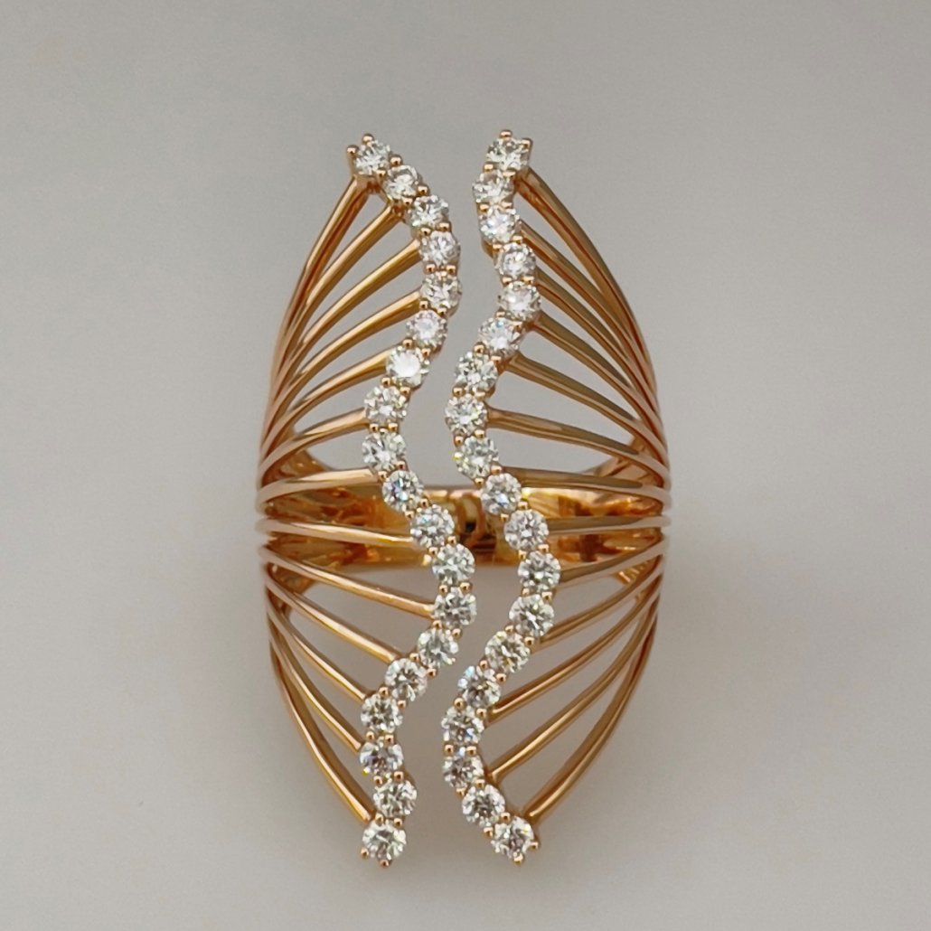 Rose Gold shaped like a clamshell, rimmed in diamonds.