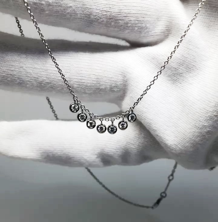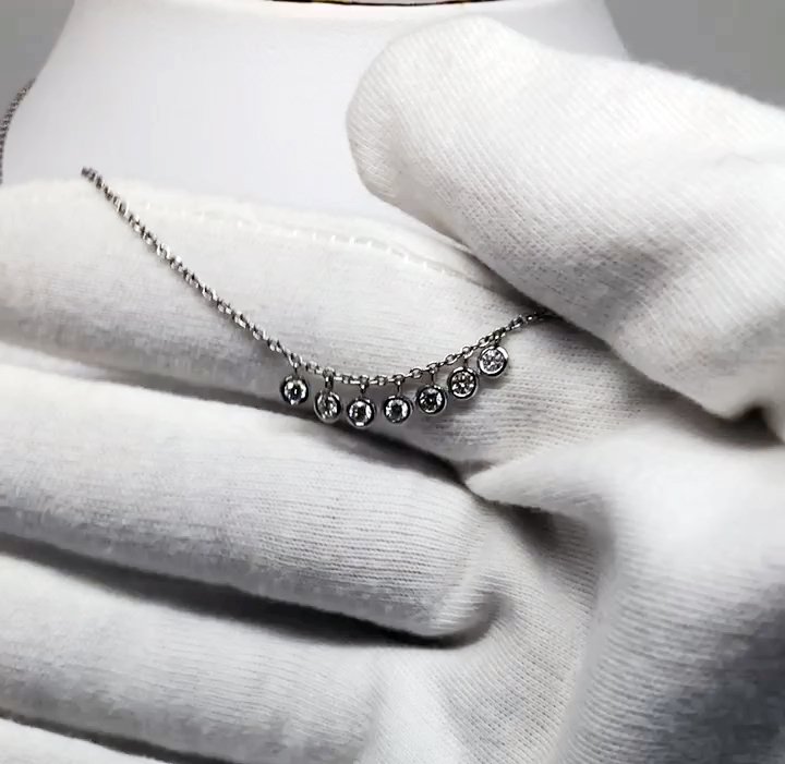 Tags Bezel Dangles, Choker Length Chain, Diamonds, holiday gifts 2020, trending, White Gold Diamond Necklace