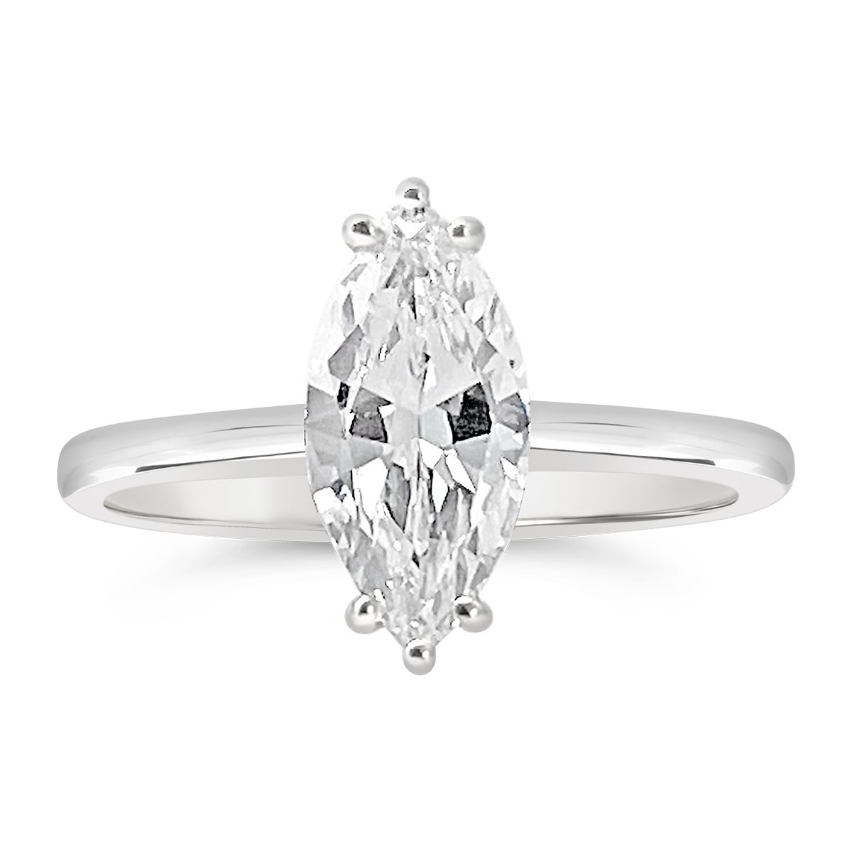 An impeccable marquise-cut diamond steals the show in this solitaire engagement ring. Made with 14k white gold and natural marquise cut diamond, prong set to the center.