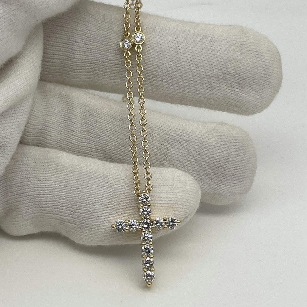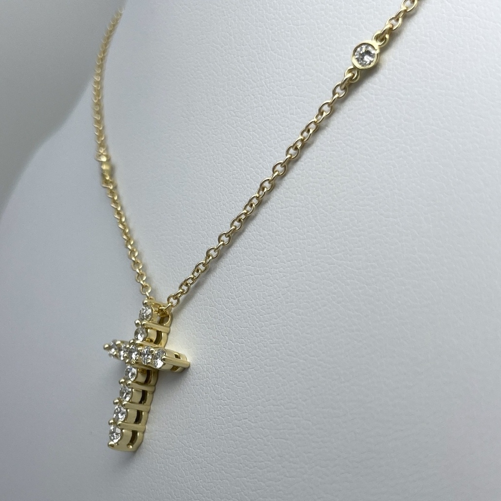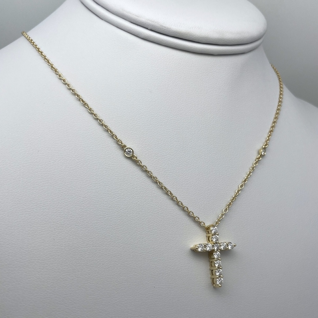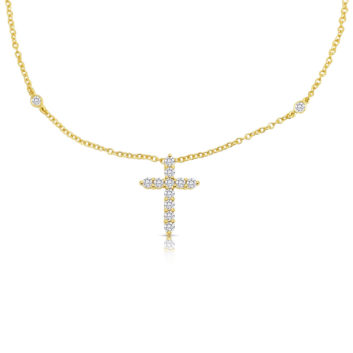 Tags 18k Yellow, Cable Chain, Cluster, Cross, Cross Jewelry, Diamond, Elegant, Pendant, Prong Set, Shared Prongs, Stones on Chain, symbolic