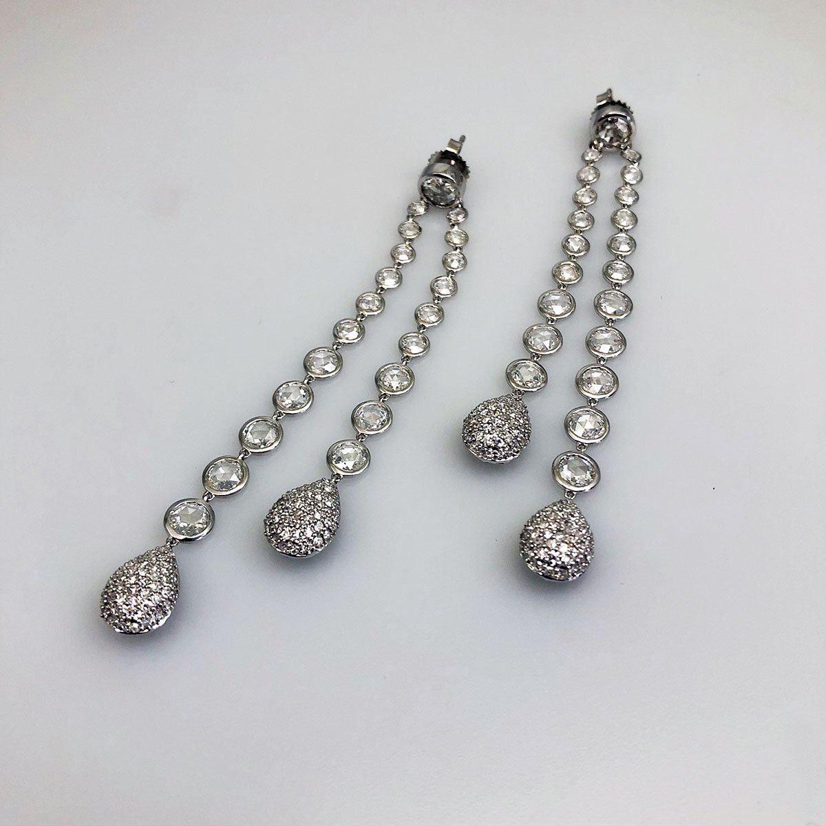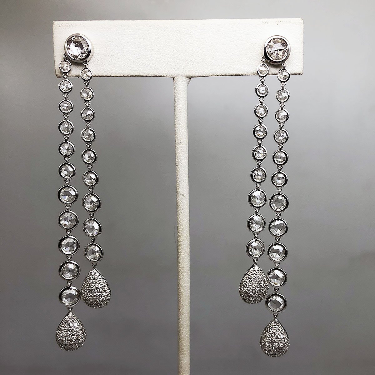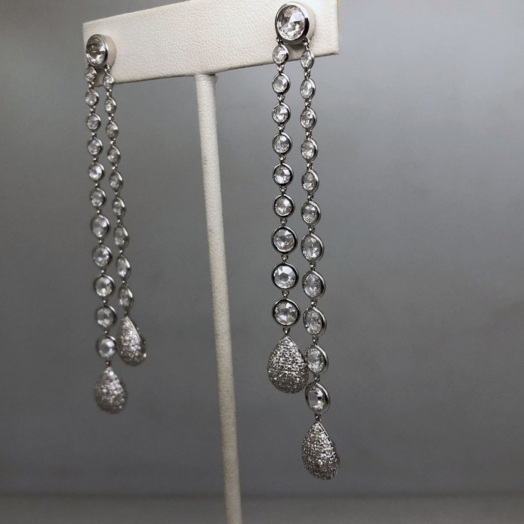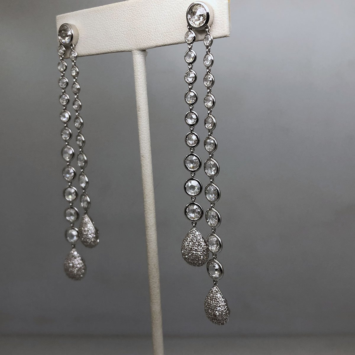 Categories 18K White, Dangles, Diamond Earrings, Diamonds, Earrings, Elegant, Lavish & Sophisticated, Fine Jewelry, Master Earring, Master Stone, Master Stone 2, White Gold