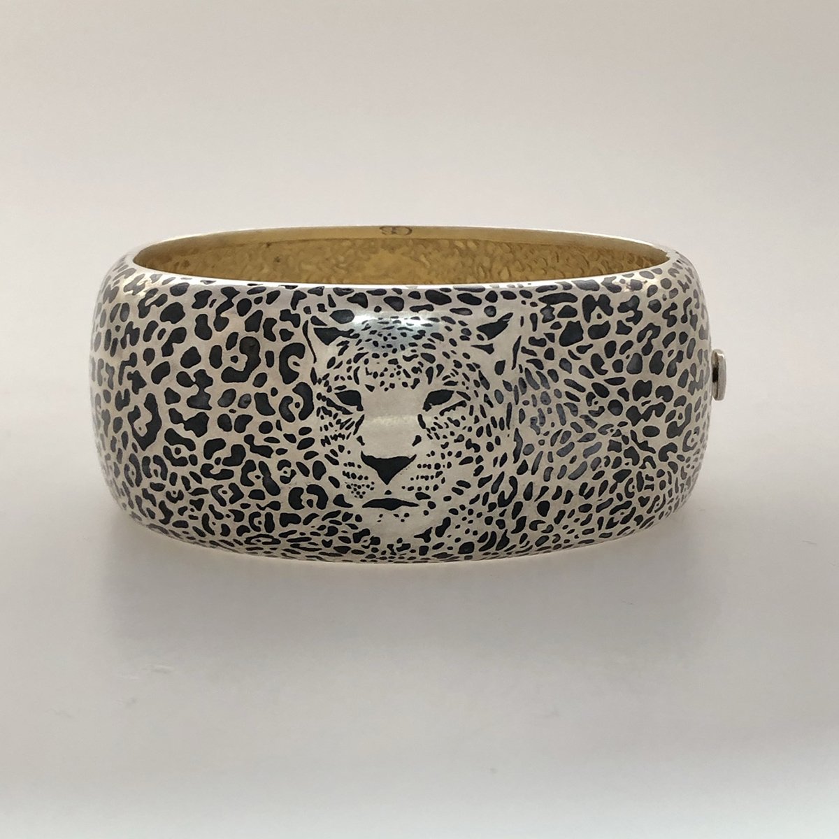 Tags Contemporary Cuff Bracelet, Leopard, One of A Kind Enamel, One-Of-A-Kind, Silver