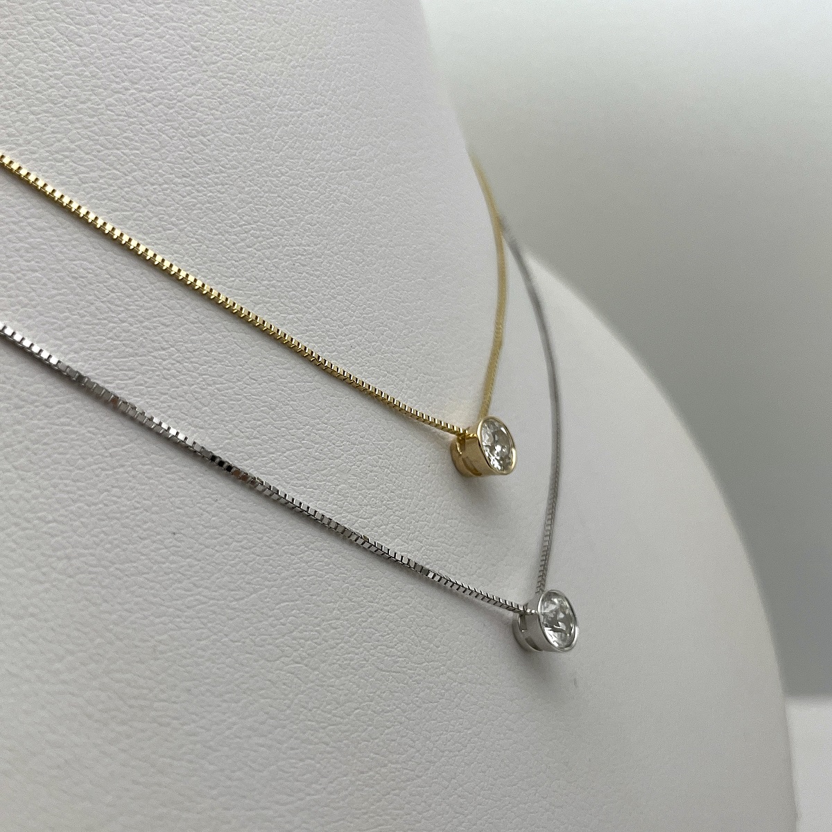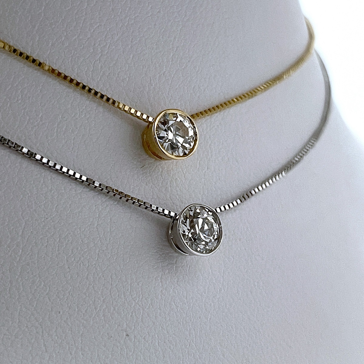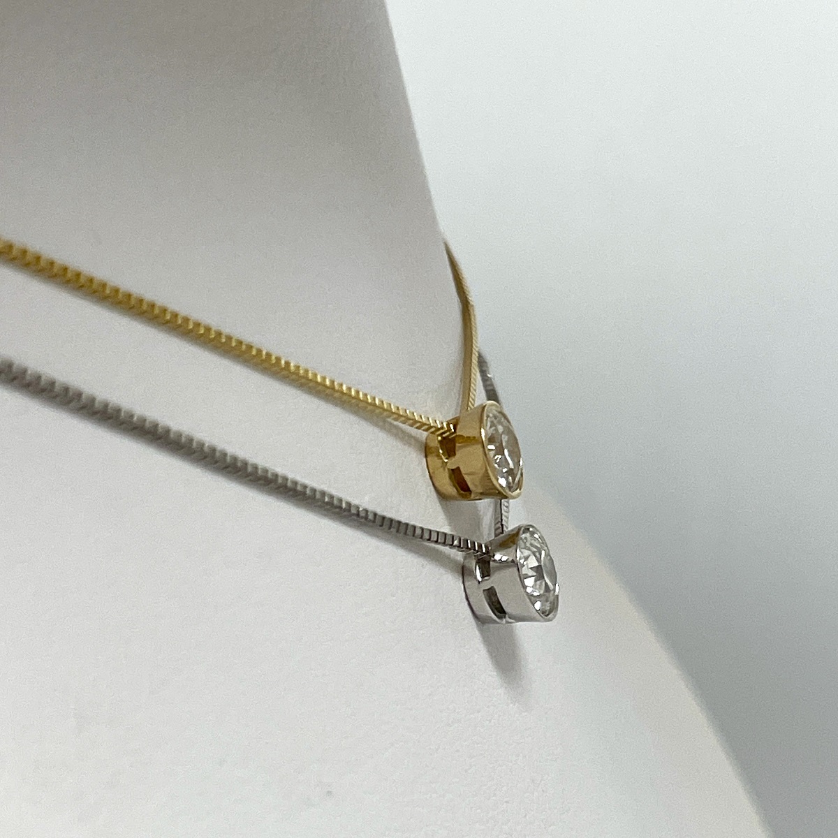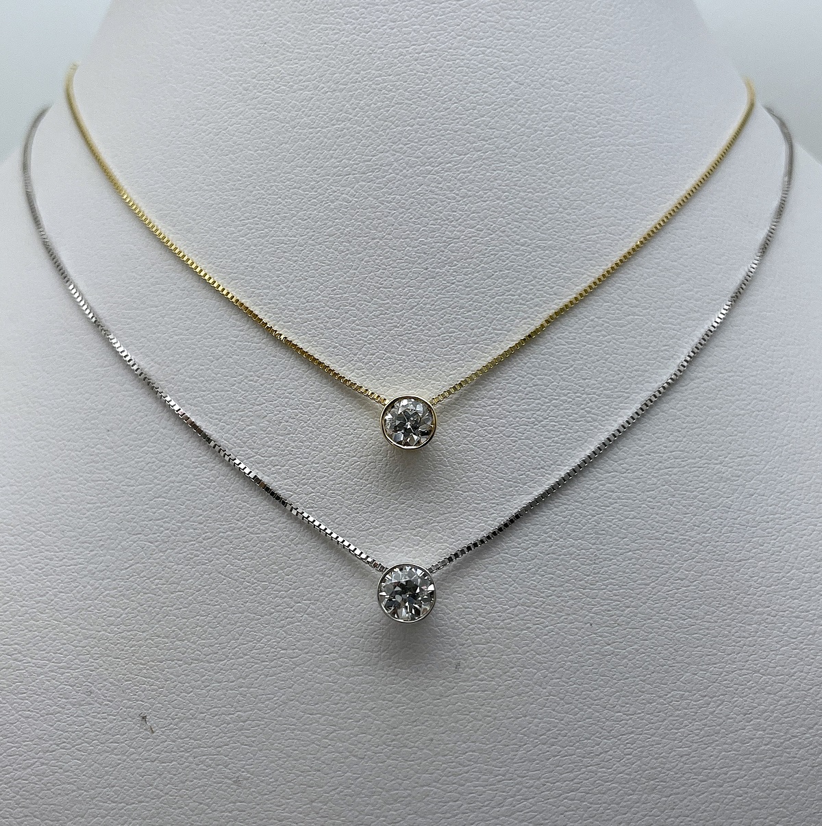 Tags 14k White, bezel, Box Chain, Diamond, Pendant, Sliding, solitaire