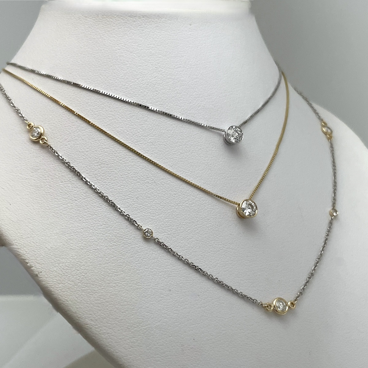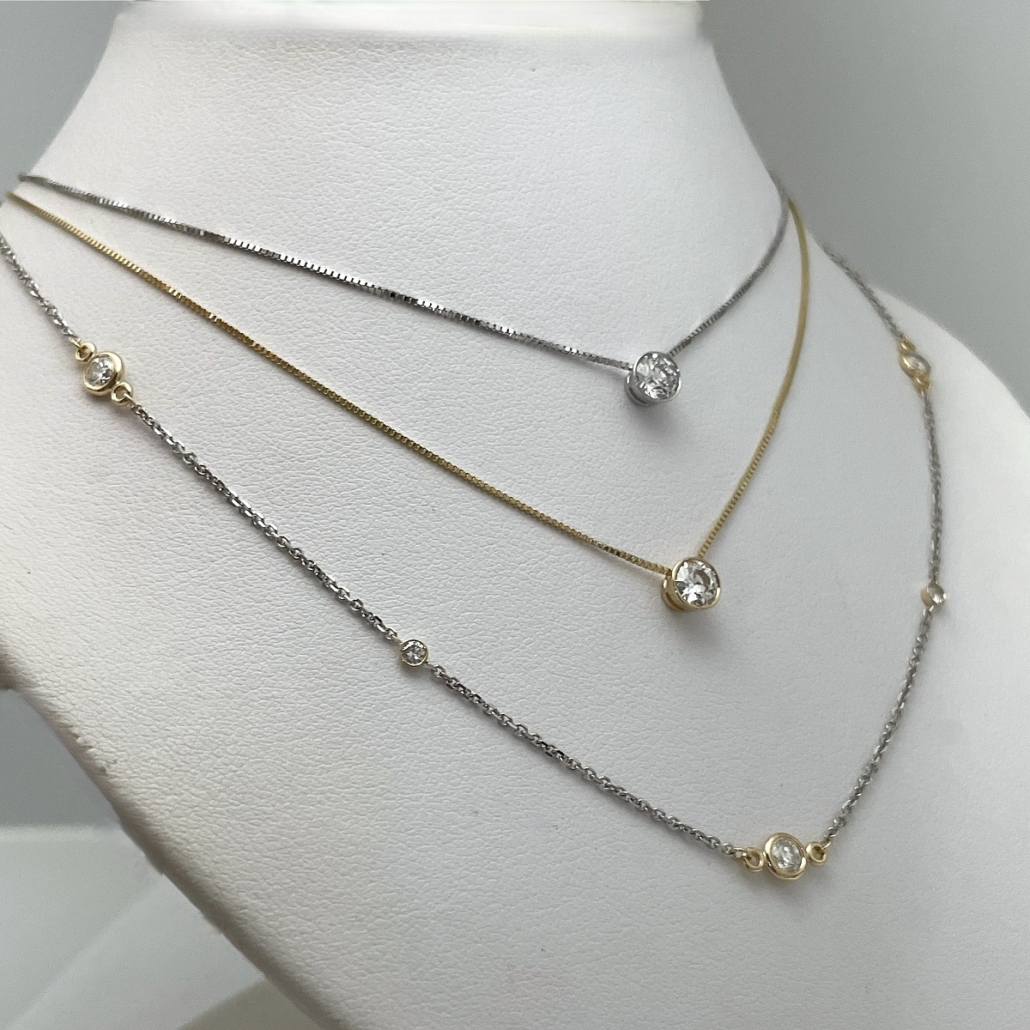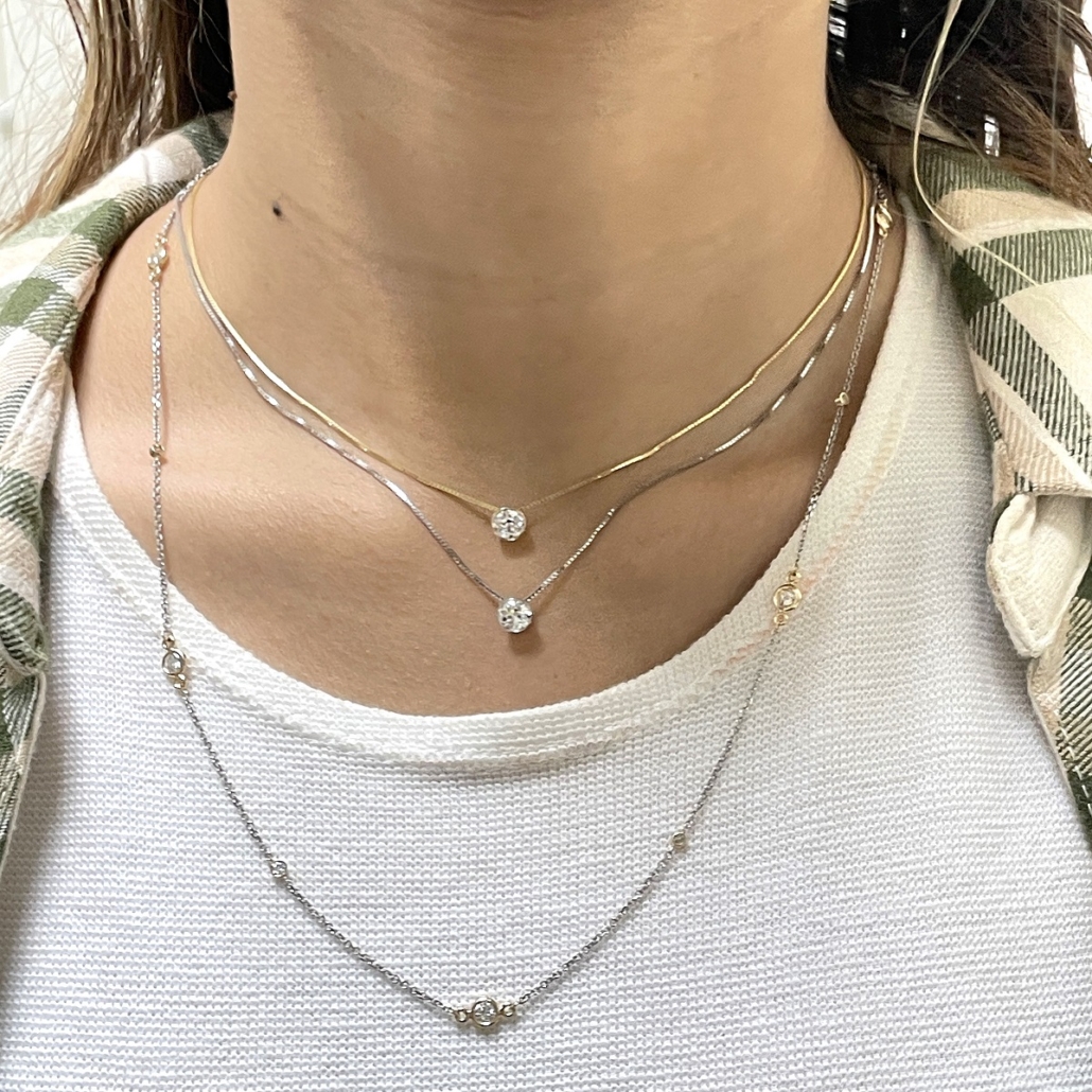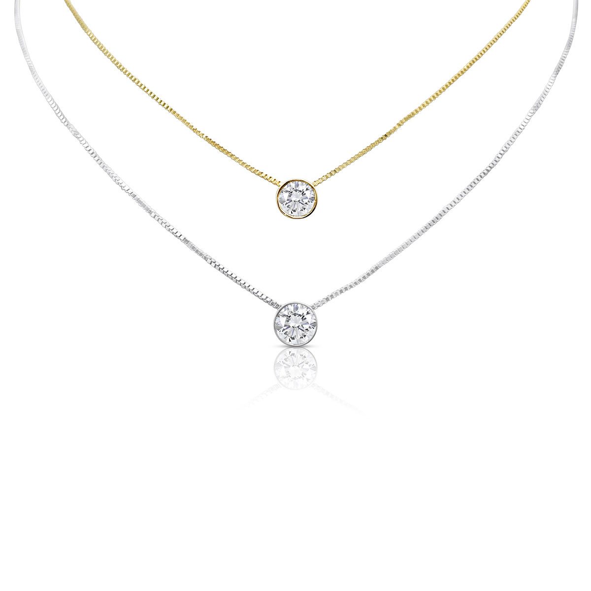 Tags 14k White, bezel, Box Chain, Diamond, Pendant, Sliding, solitaire