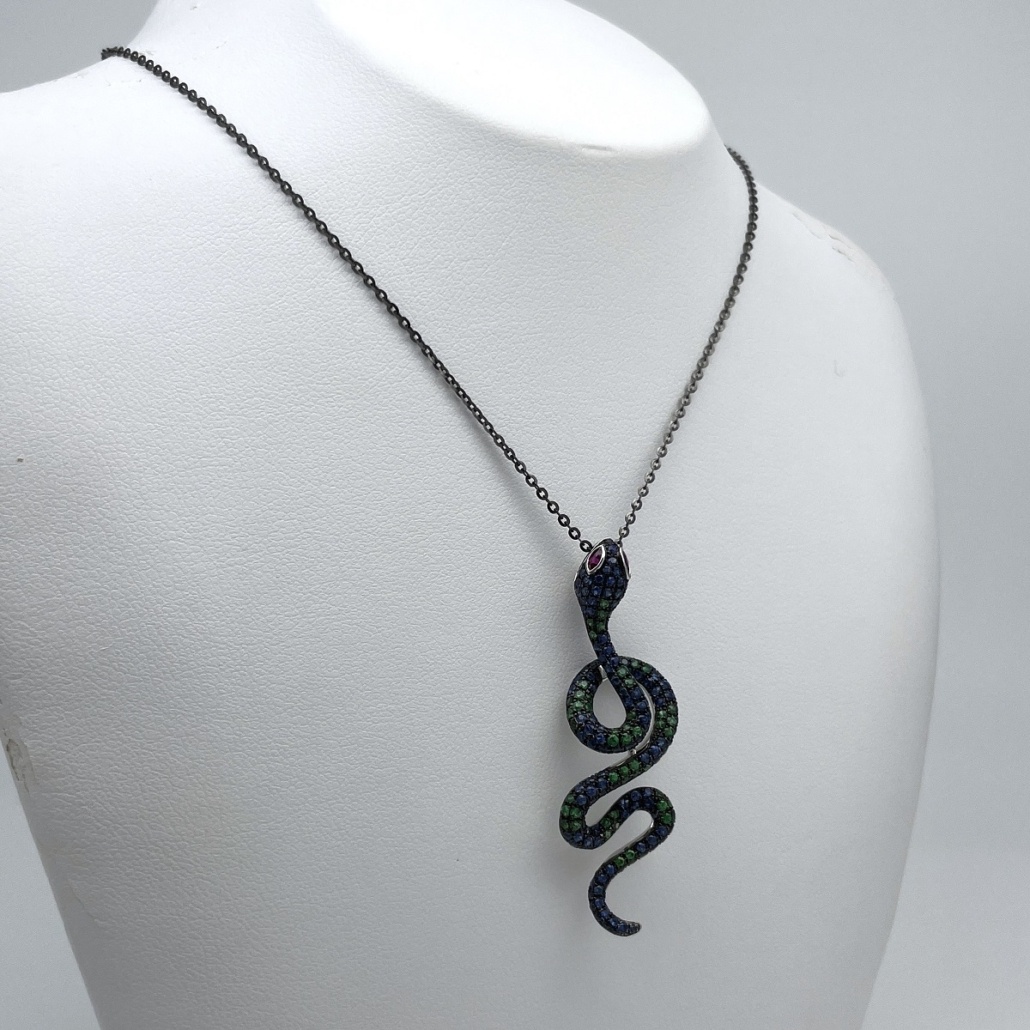 Tags 18K, 18k White, Blue, Emerald, gemstone, Green, Pendant, Red, Ruby, Sapphire, Snake