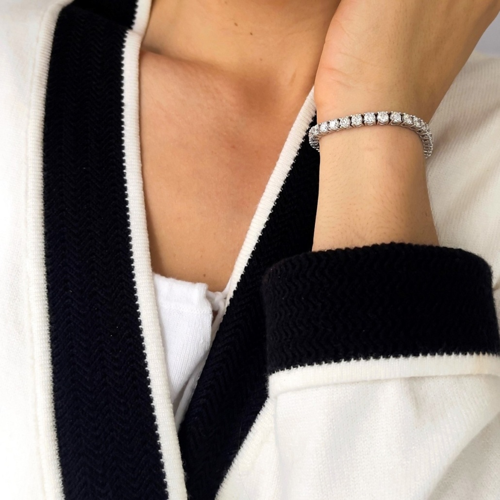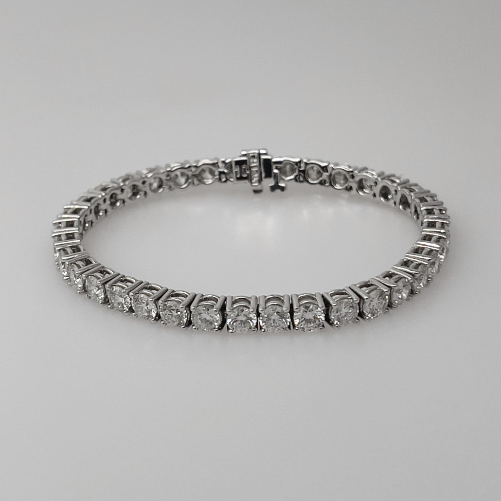 Round Brilliant Diamonds Set In 14k White Gold Tennis Bracelet Chain.