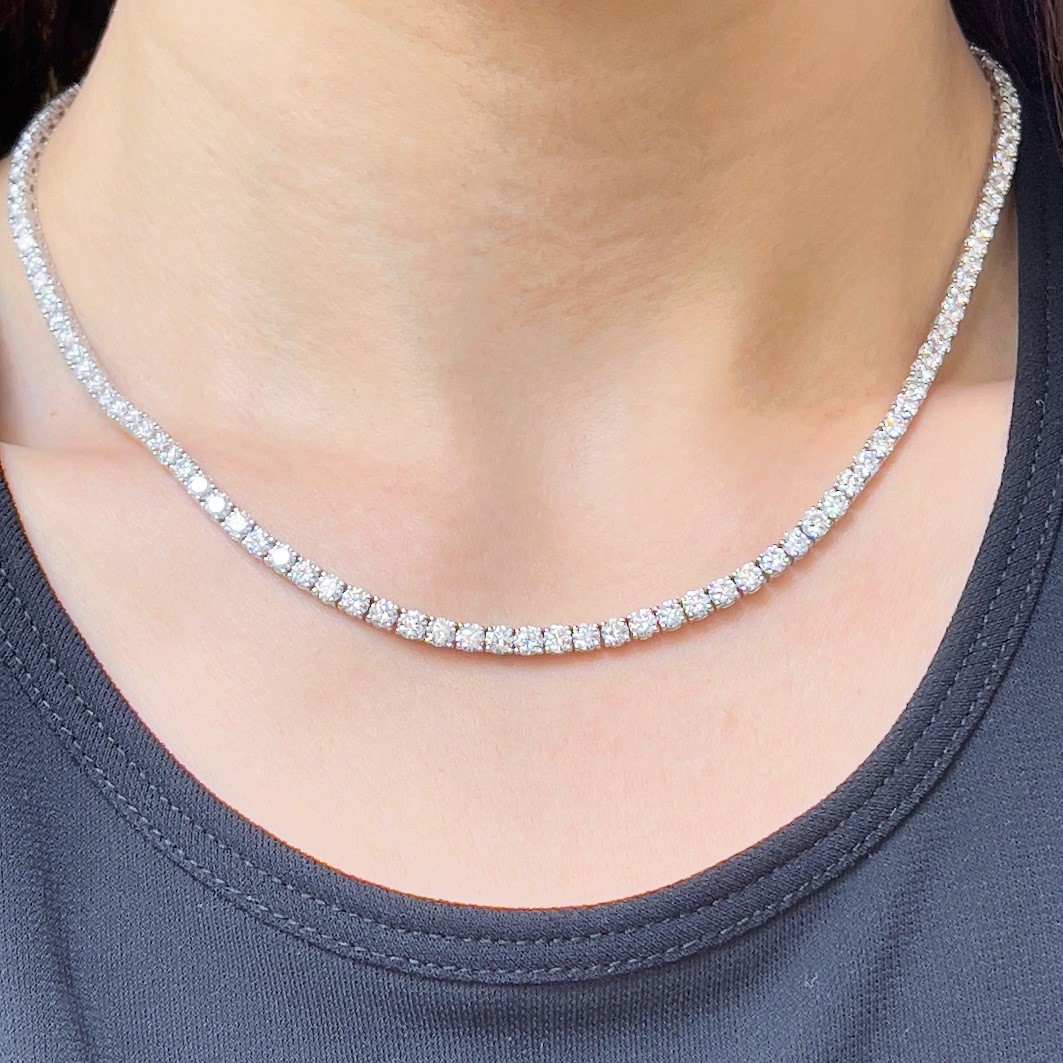 Tags Basket Setting Necklace, Diamon Open Gallery Necklace, Diamond Tennis Necklace, Elegant, Fancy, In Line, Open Airline Necklace, Open Gallery Necklace, Sophisticated, Tennis Necklace, White Gold Diamond Necklace, White Gold Inline Necklace, White Gold Tennis Necklace