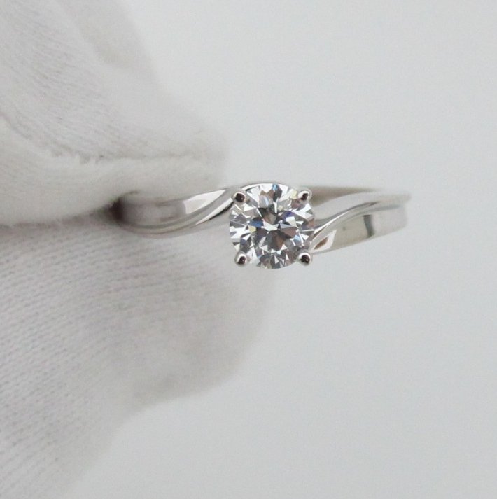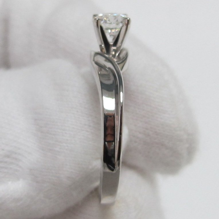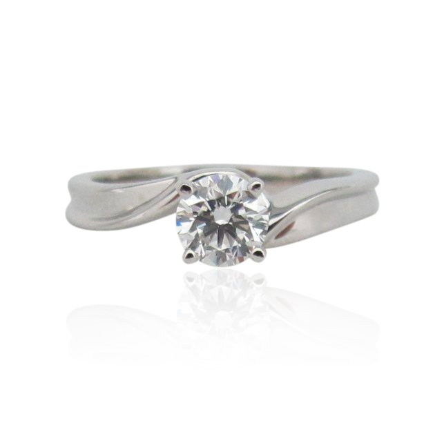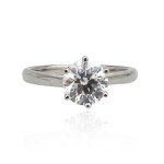 This solitaire engagement ring is 18k plumb white gold and weighs 4.10 grams and contains one round brilliant natural diamond.
