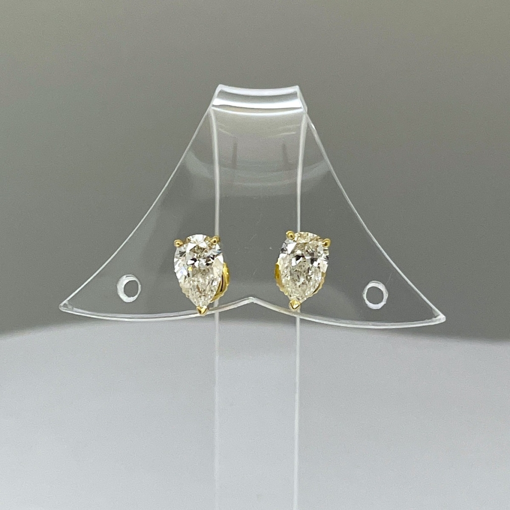 Tags 18k Yellow, Diamond, earrings, Pear Shape, Studs, Three Prongs, V Prong
