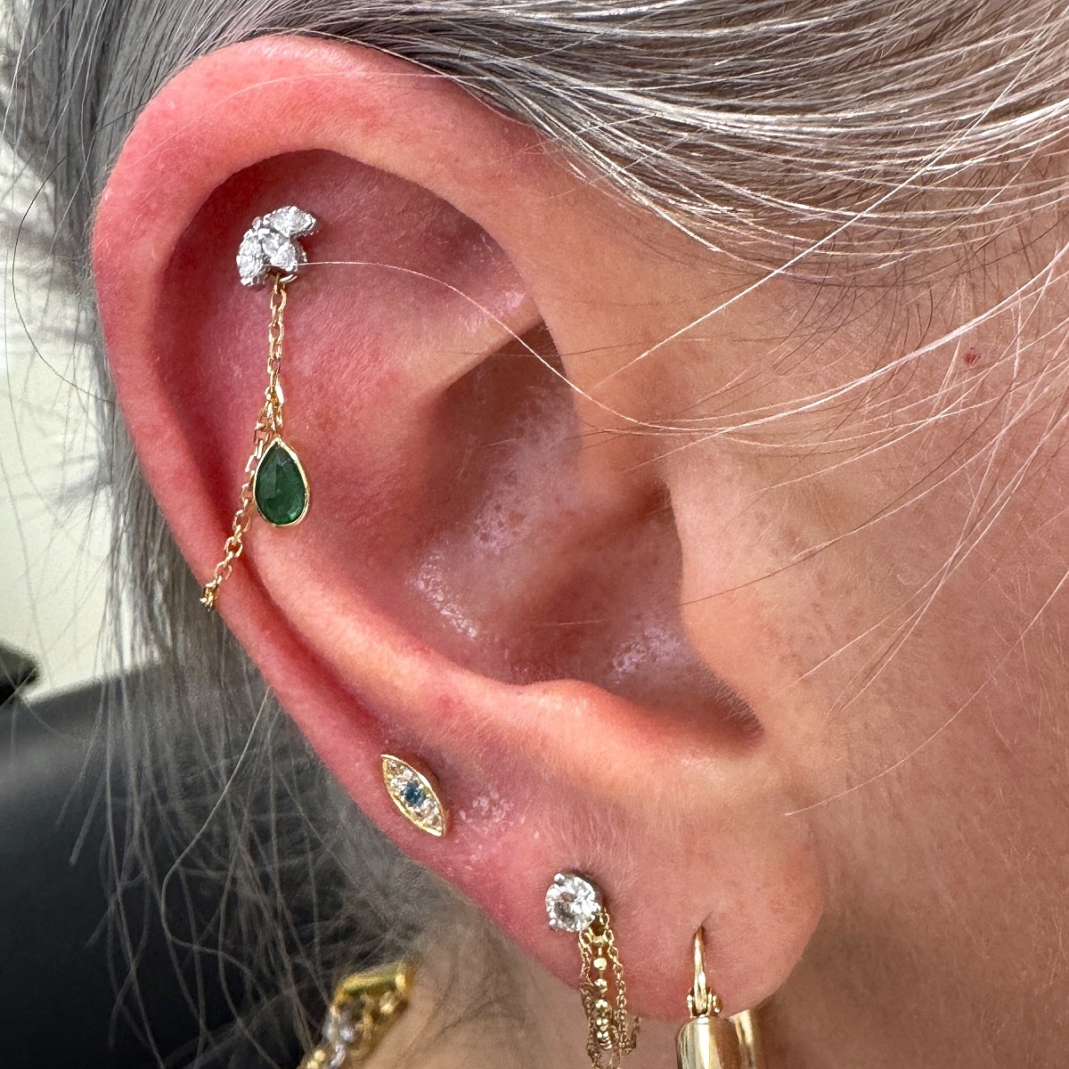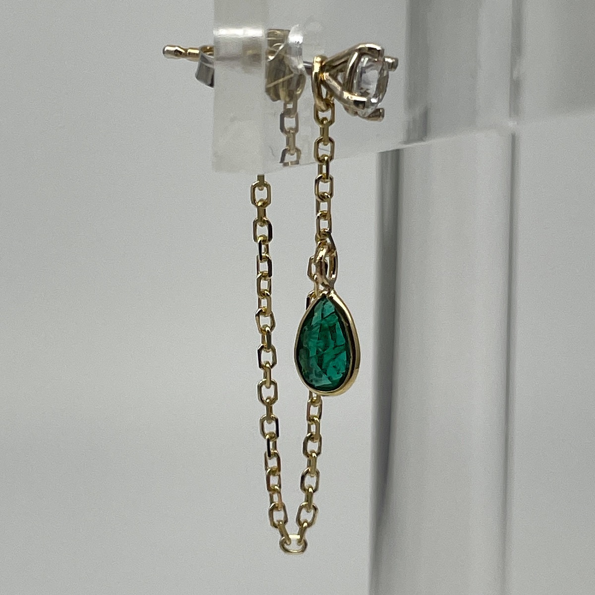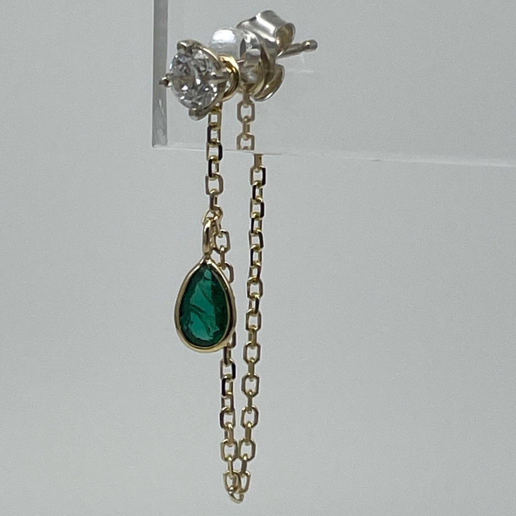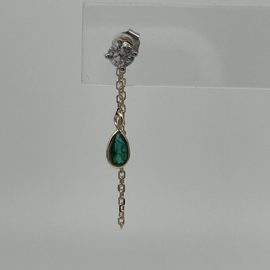 Tags 14k Yellow, bezel, Chain, Earring, Emerald, Pear Shape