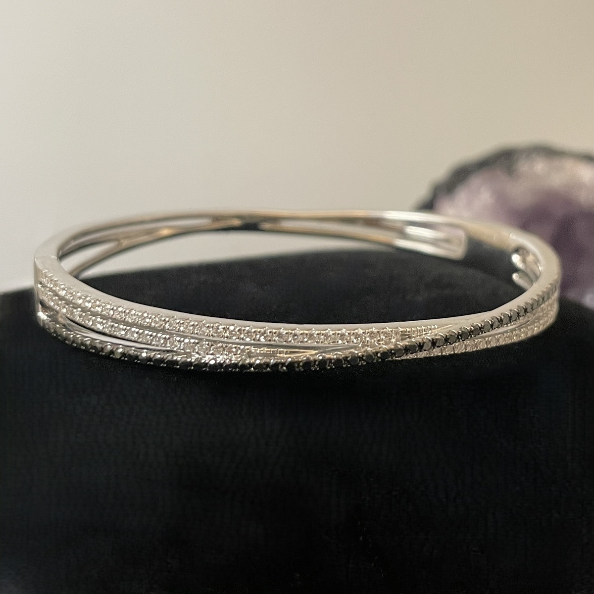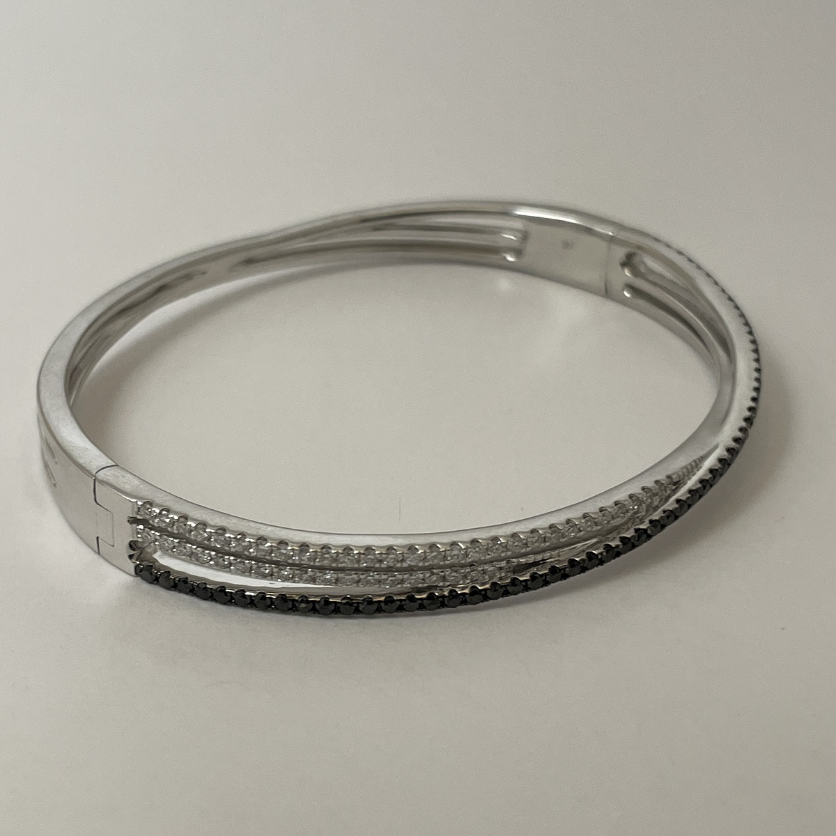 Tags 14k White, Bangle, Black, Bracelet, Diamond, Fancy, X Shape