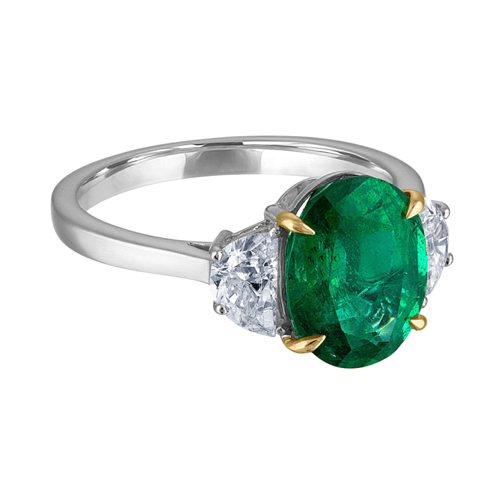Tags 3 Stone Ring, Custom Ring, Diamond Emerald, Emerald, emerald ring, Emerald Ring With Diamonds, Fine Jewelry, Two Tone Emerald, Two Tone Emerald Ring, White Gold Emerald, Yellow Gold and Emerald
