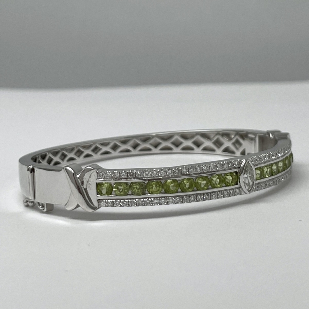 Categories 14K White, Bangle & Cuff Bracelets, Custom Bracelet Not Avail, Custom Design, Diamonds, Fine Jewelry, Fine Jewelry Latest Arrivals, Gemstone Bracelets, Gemstones, Master Bracelet, Master Stone, Master Stone 2, Master Stone 3, Metal Type, Peridot, The Latest Arrivals
