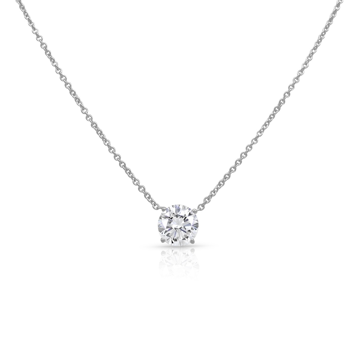 Tags 14k White, Basket Set, Cable Chain, Classic, Diamond, Four Prong, Necklace, Pendant, solitaire, Traditional