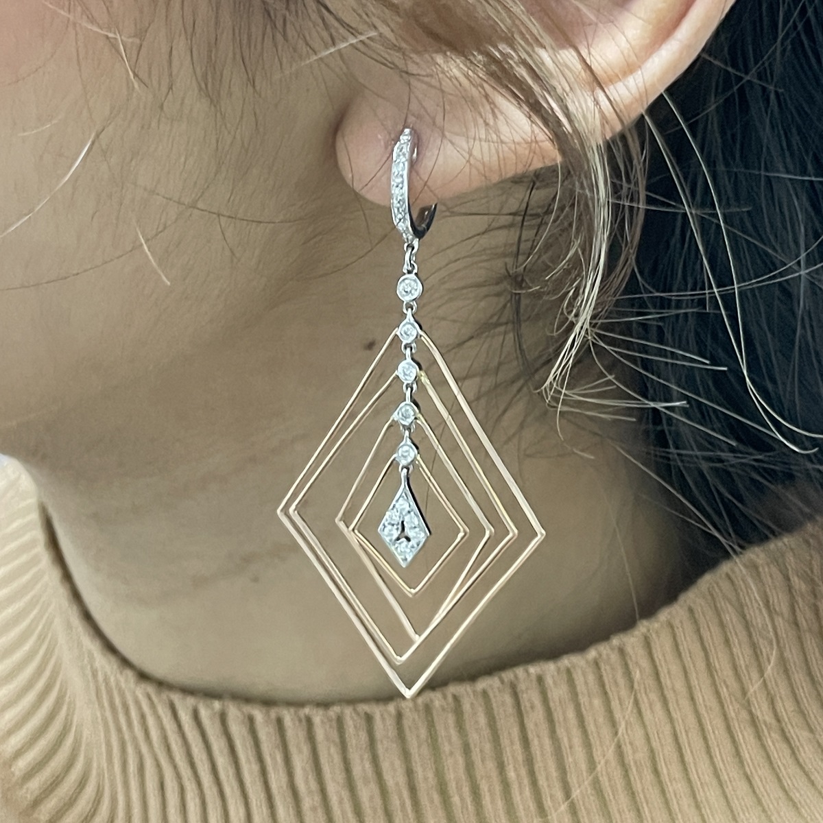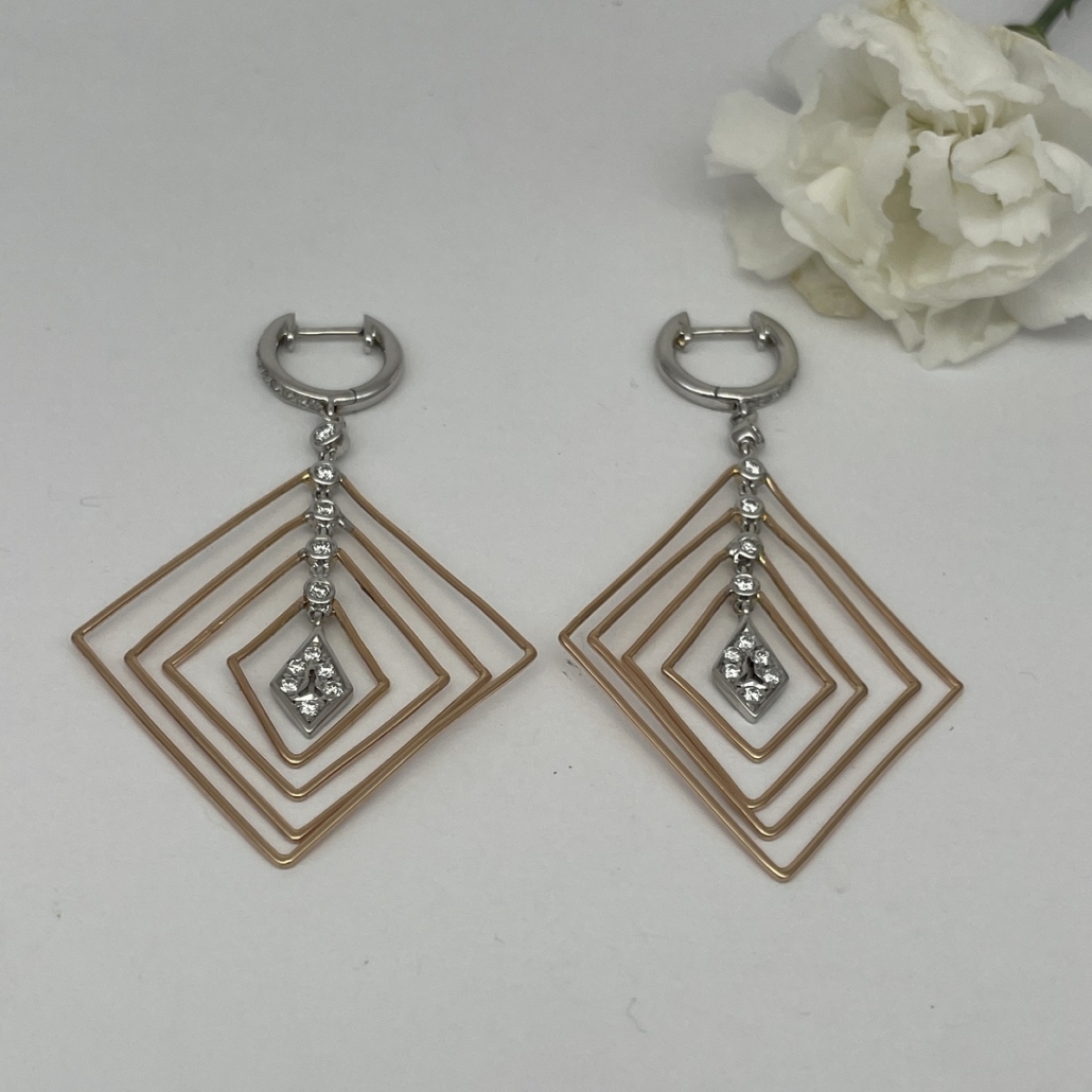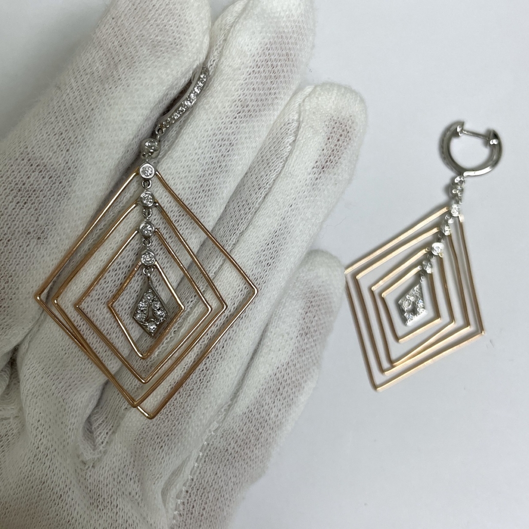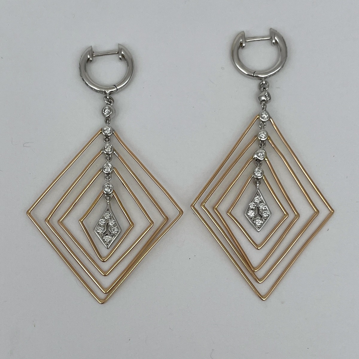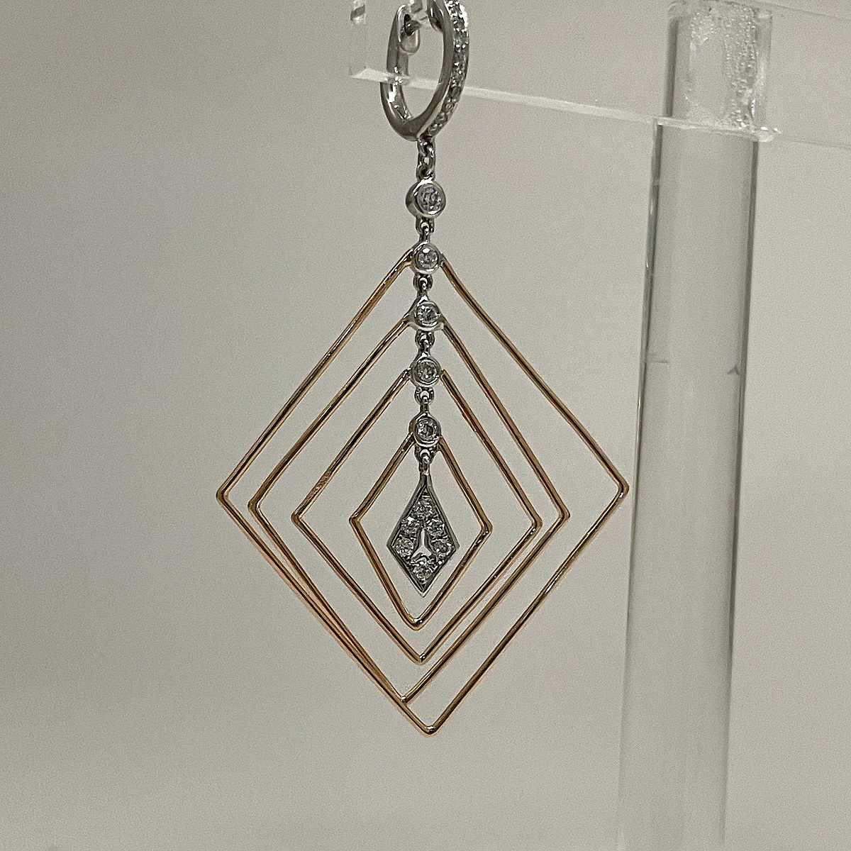Tags 14k Rose, 14k White, bezel, Channel Set, Dangle, Diamond, Quadrilateral, Rhombus, Shared Prongs