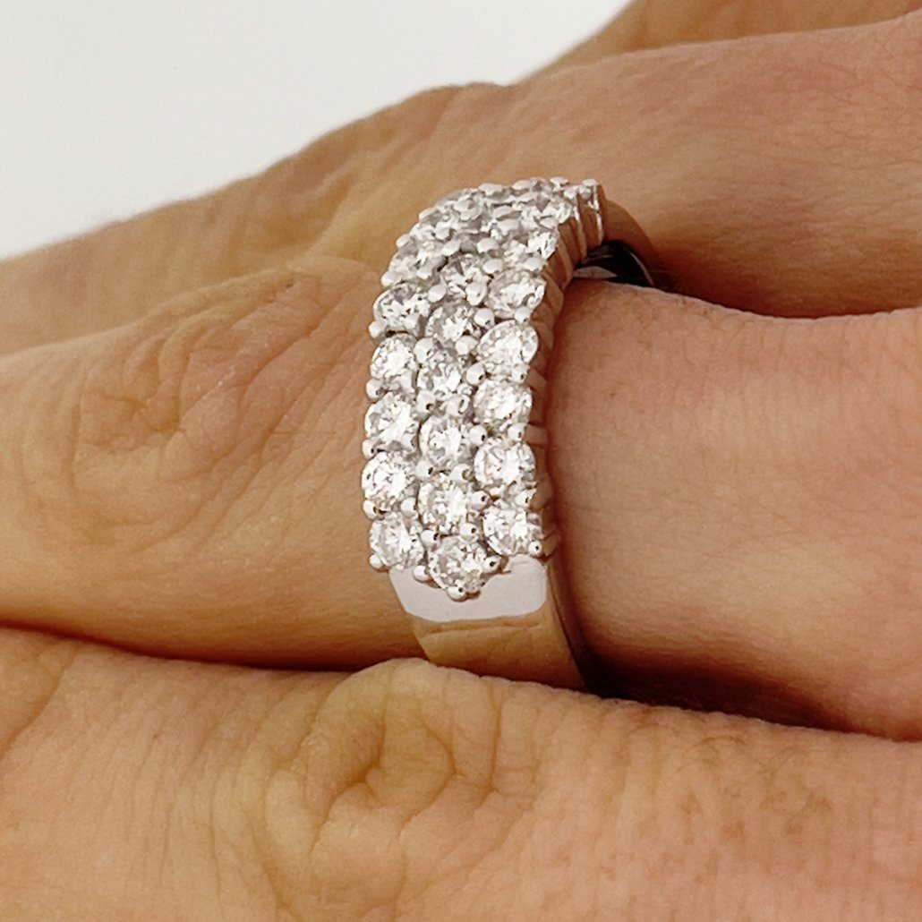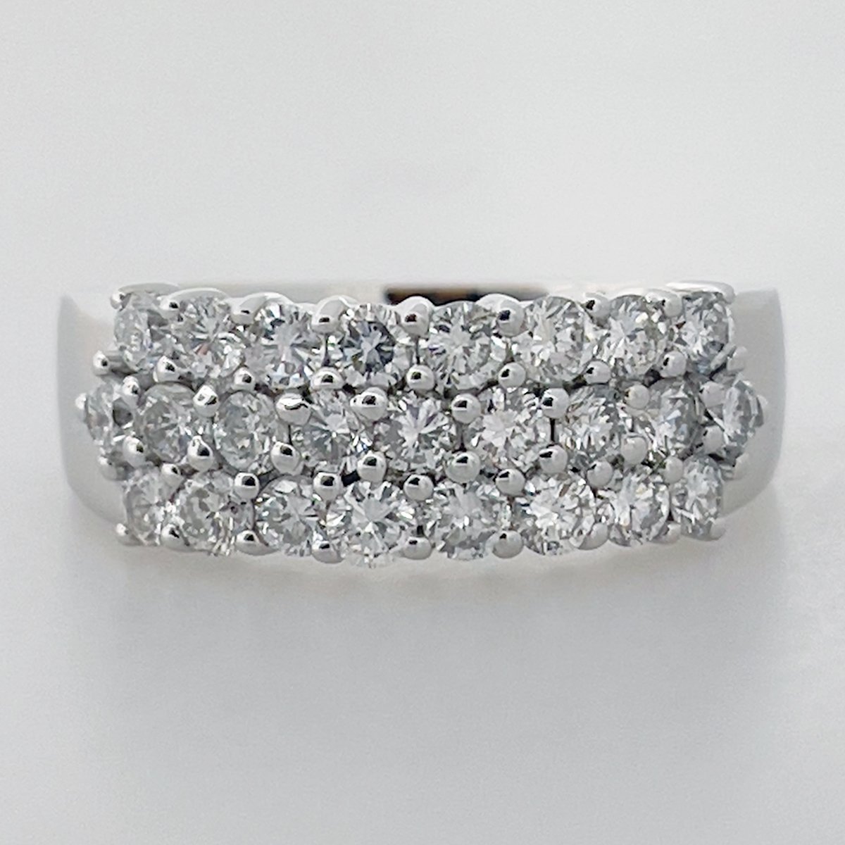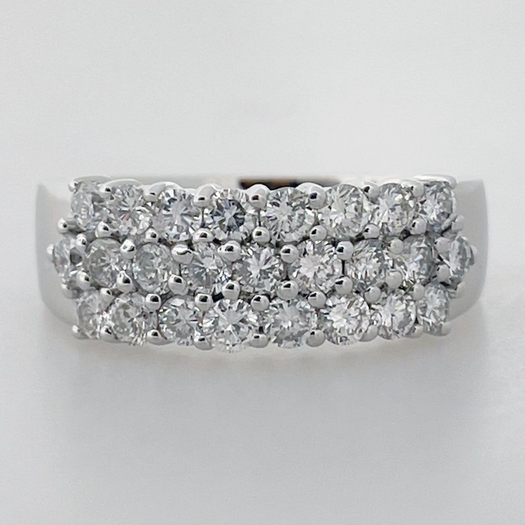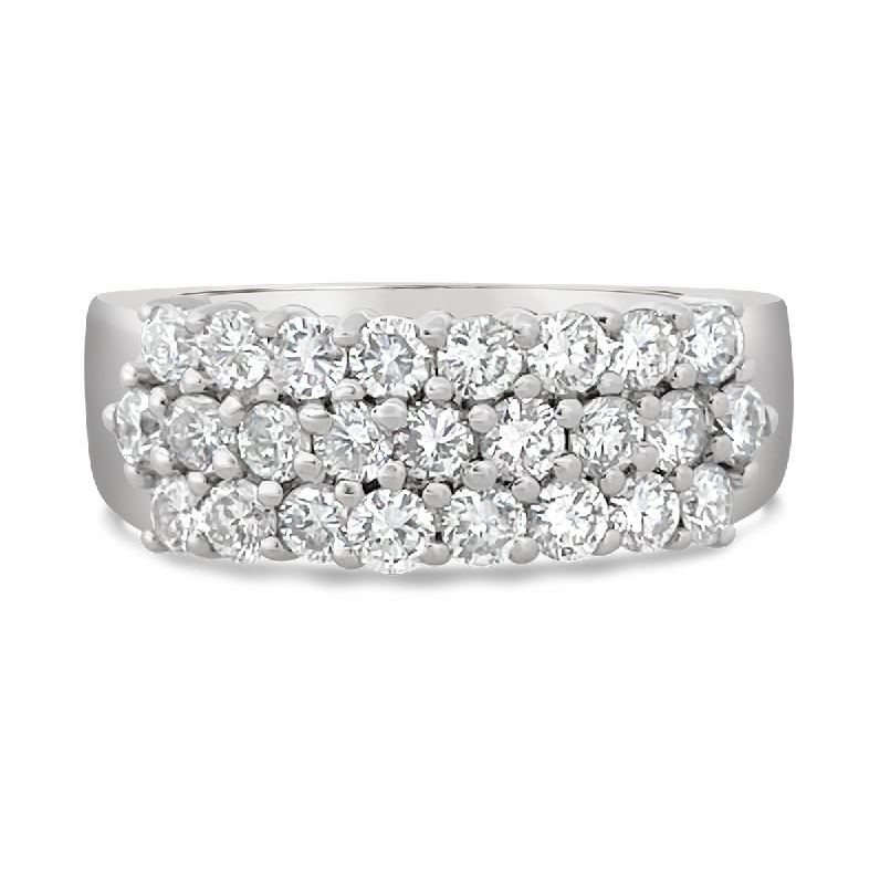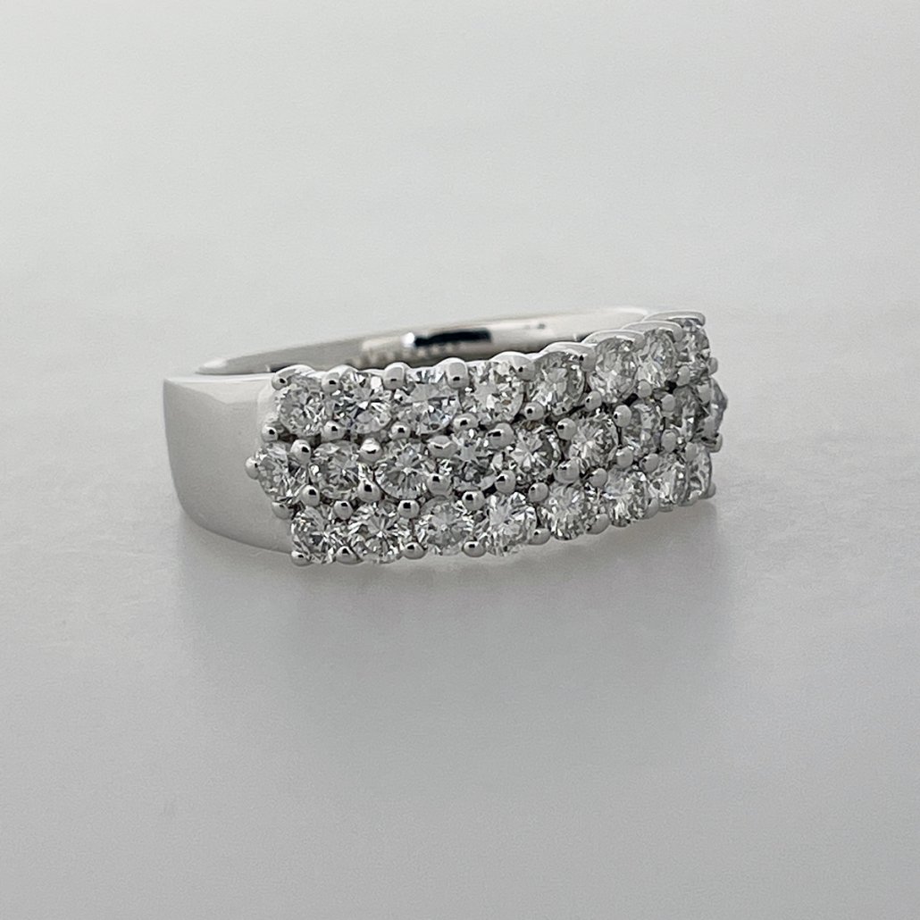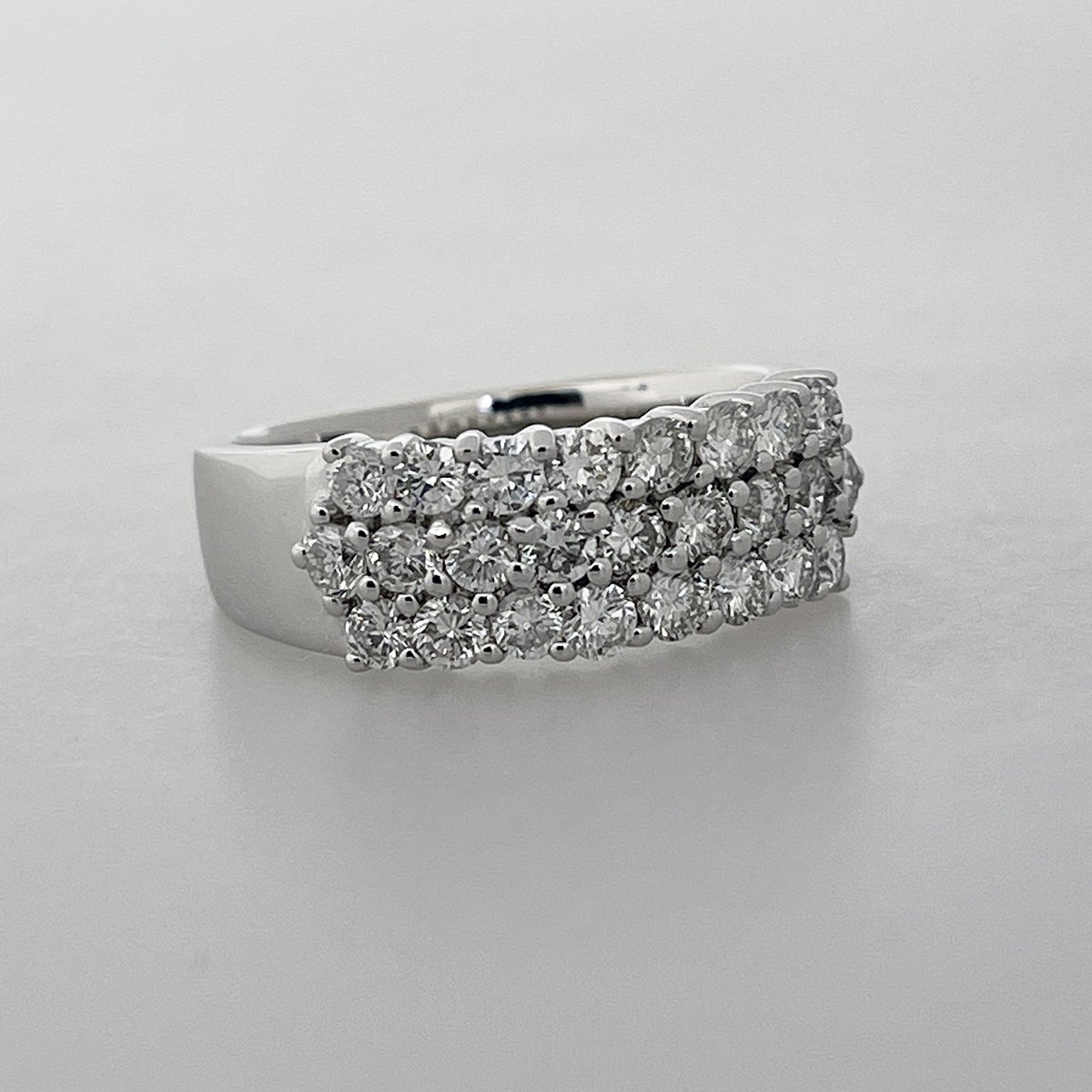 Tags Diamond and White Gold Wedding Band, Diamond Rolls Ring, Diamond Three Lines Ring, Multi-Row Diamond Band, Three Line Diamonds, Three Row Band, White Gold Diamond Cluster Ring, White Gold Diamond Roll Ring, White Gold Diamond Rolls