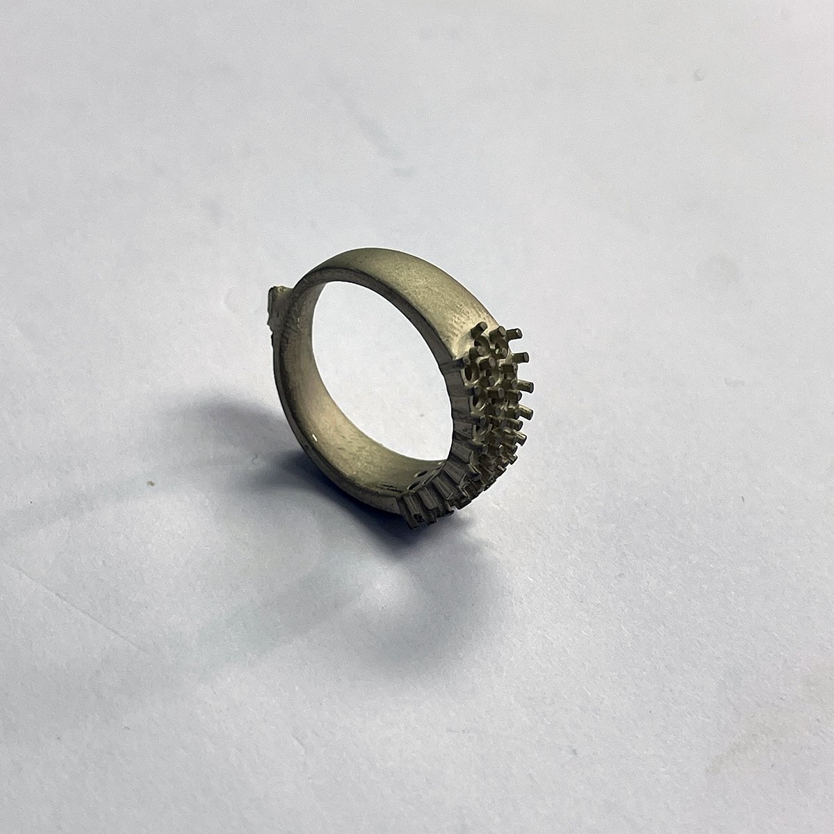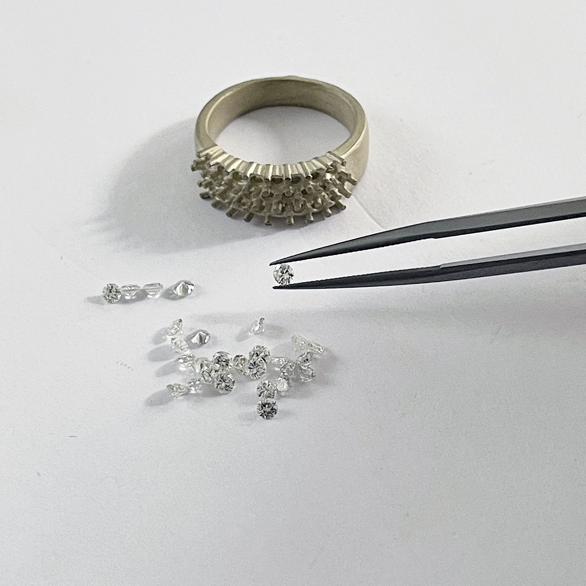 Three Rows Of Gleaming Diamonds Set Into A White Gold Shank Make For An Eye-Catching Custom Ring.