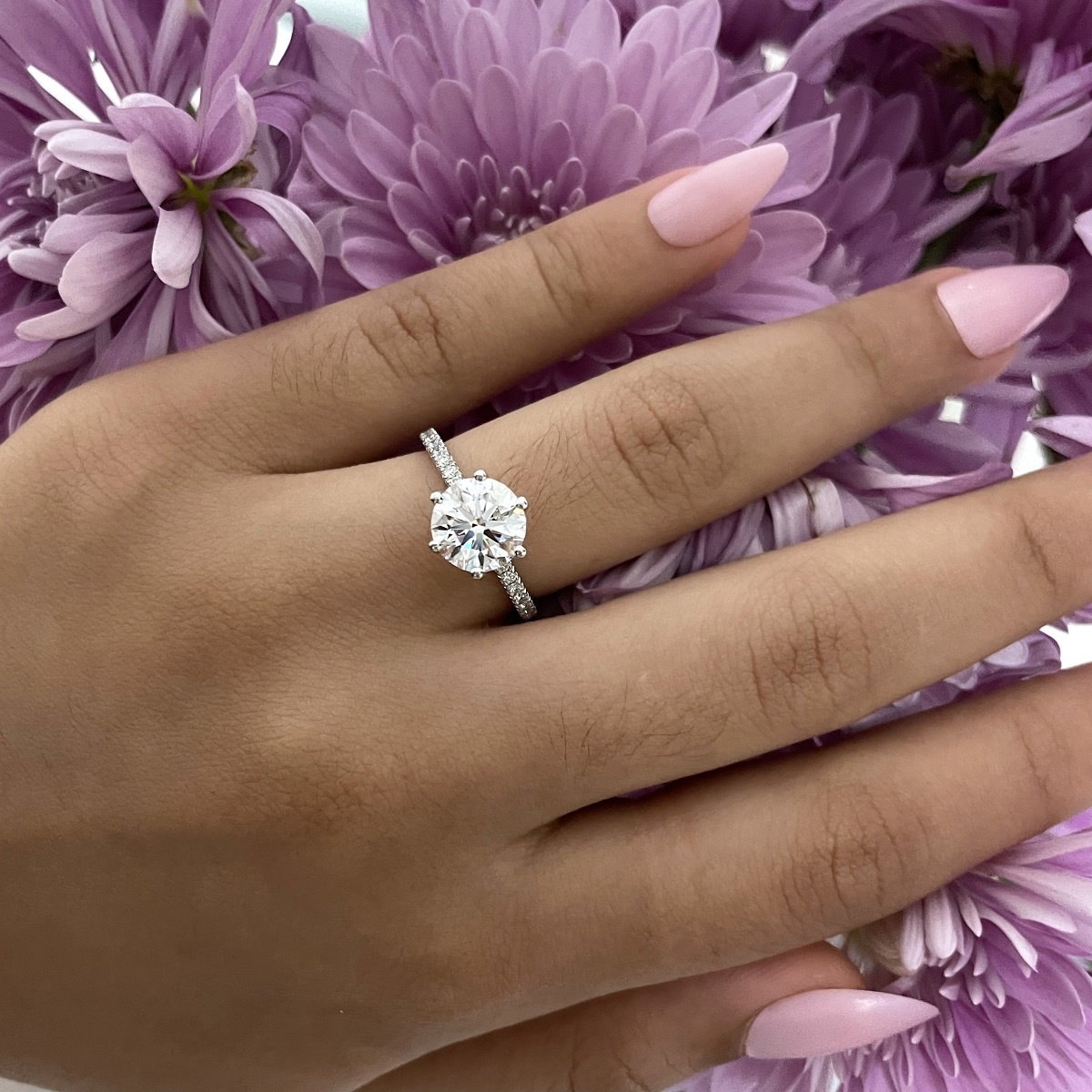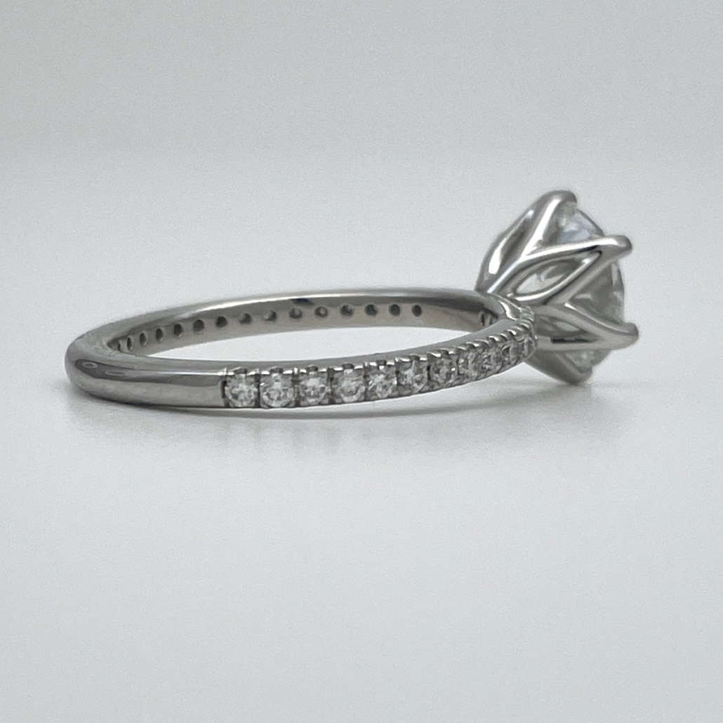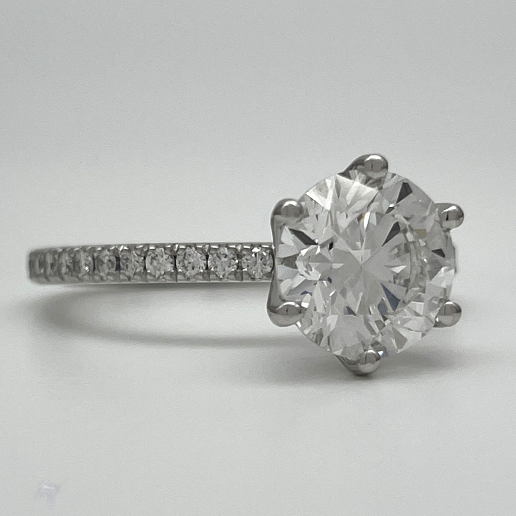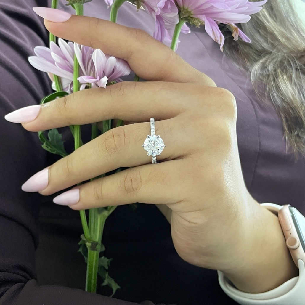 Tags Diamond, engagement, Floral, Platinum, Ring, Setting, Six Prong, Stones On Shank, tulip