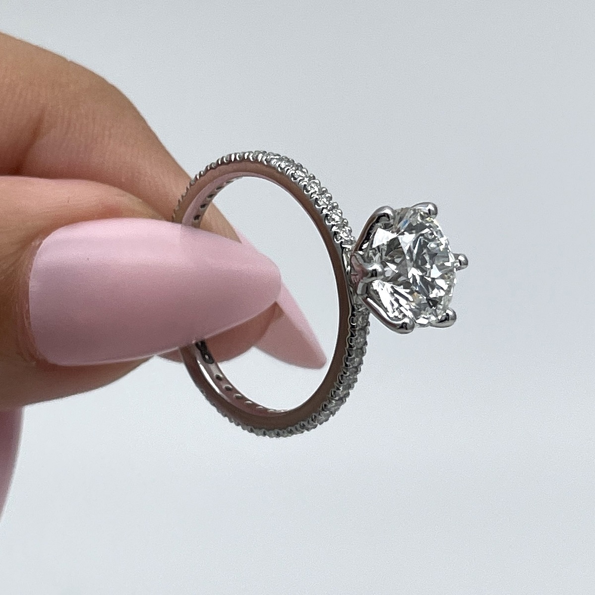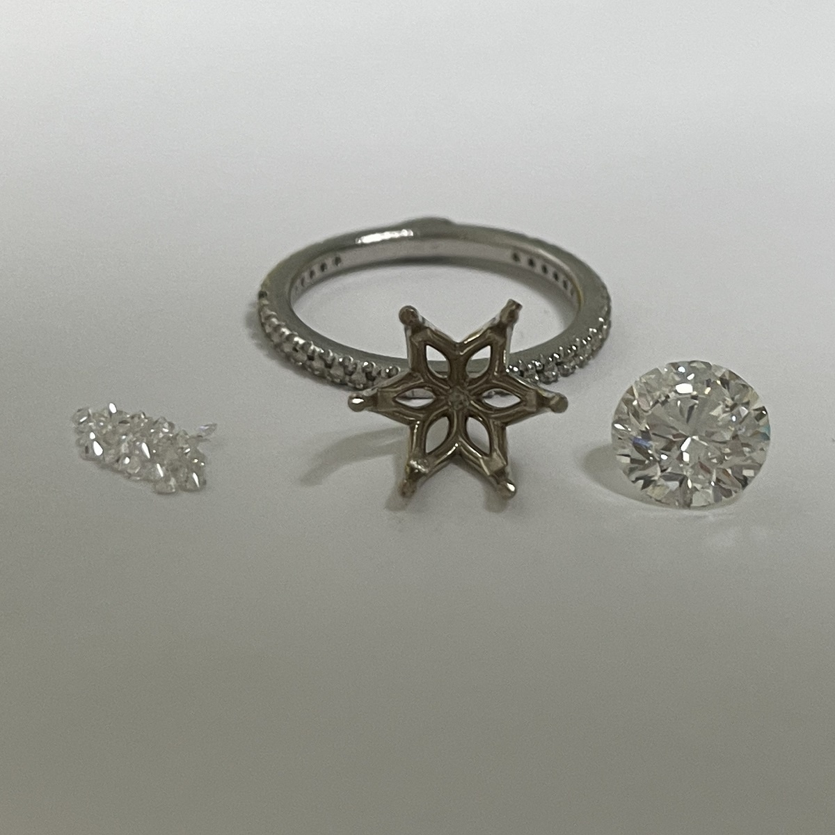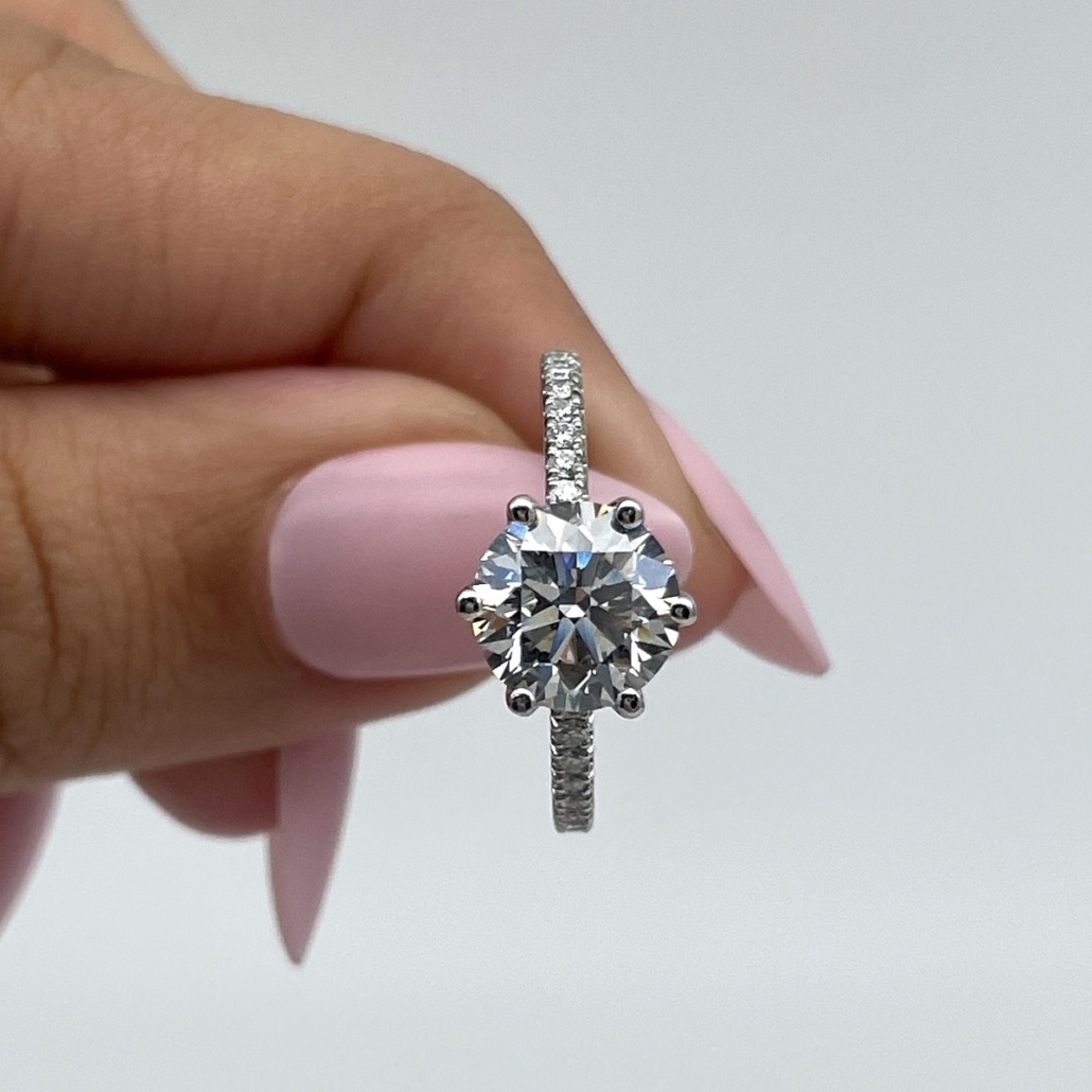 Tags Diamond, engagement, Floral, Platinum, Ring, Setting, Six Prong, Stones On Shank, tulip