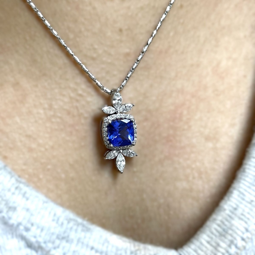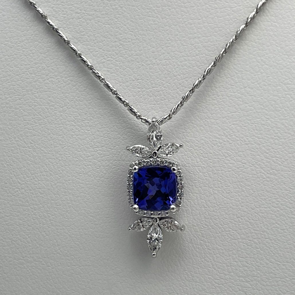 Categories 14K White, Cluster, Custom Design, Custom Pendant Not Available, Diamonds, Fancy Cluster, Fine Jewelry, Gemstone Pendants, Gemstones, Master Pendant, Master Stone, Master Stone 2, Metal Type, Pendants, Tanzanite