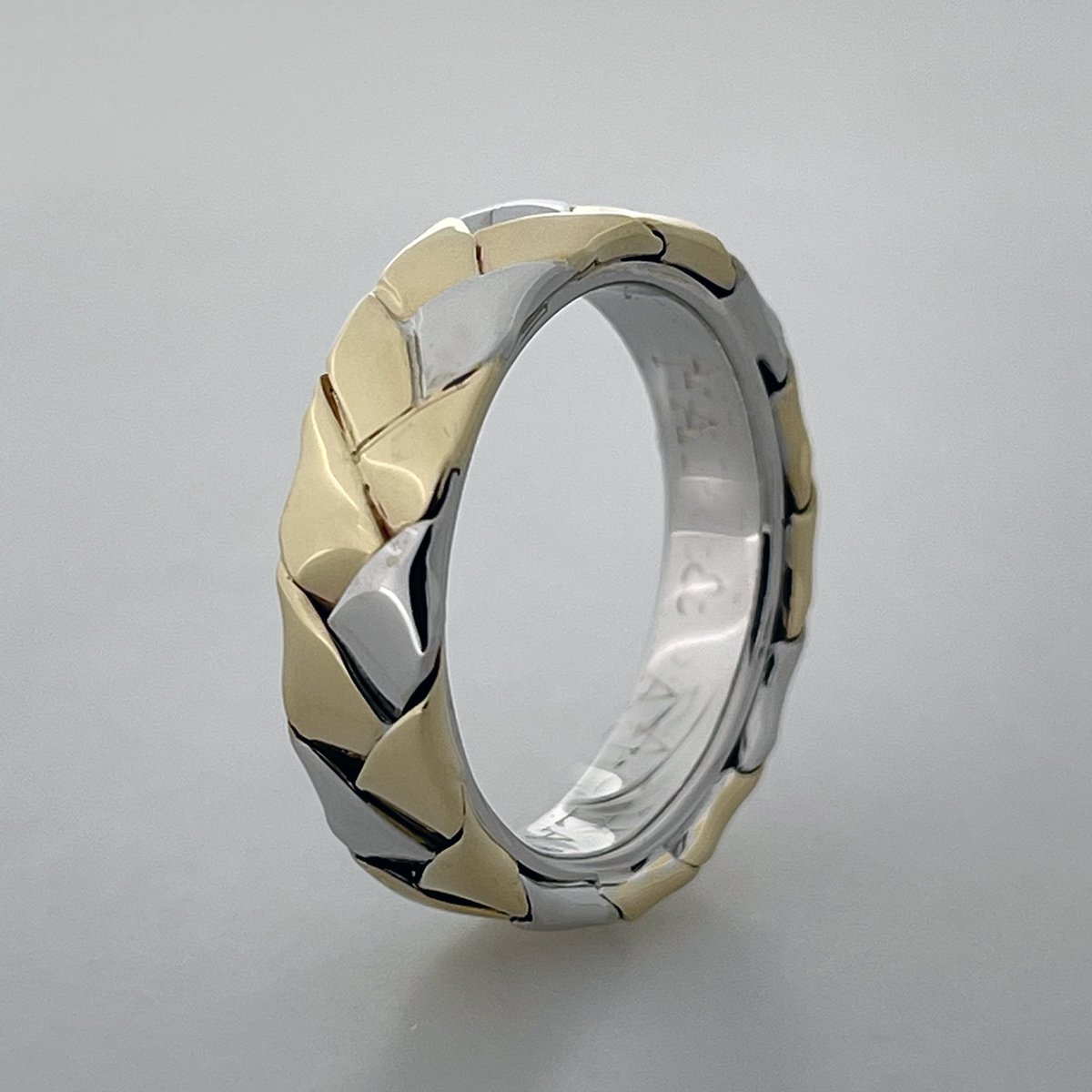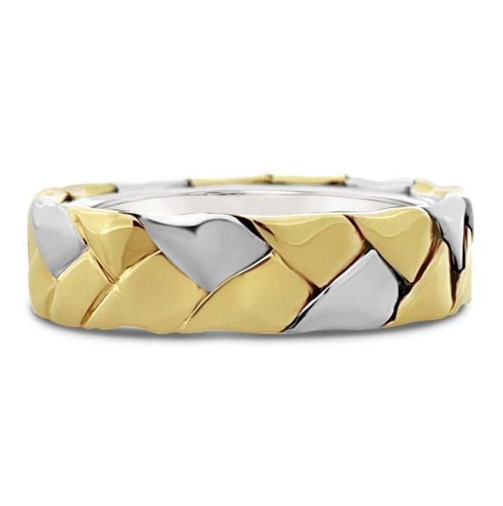 This ring combines 14k white and yellow gold in a braided band.
