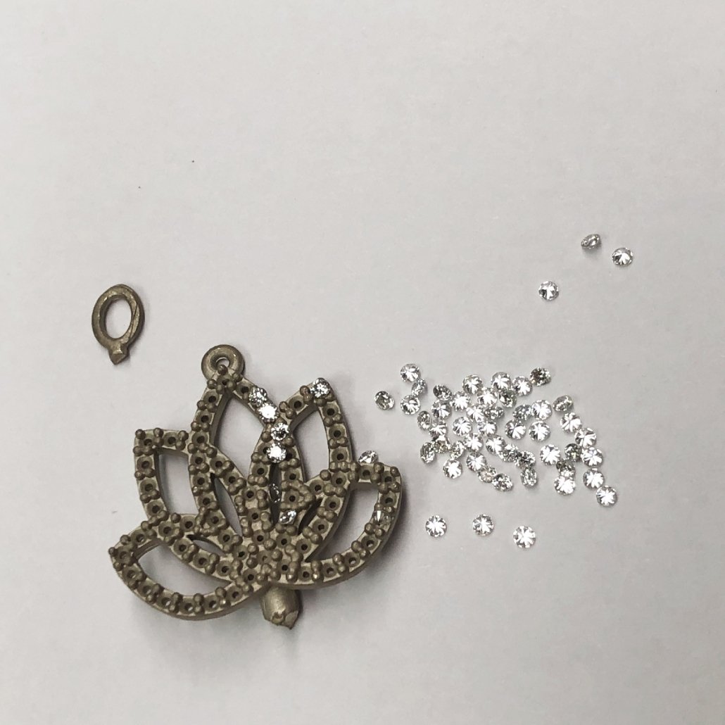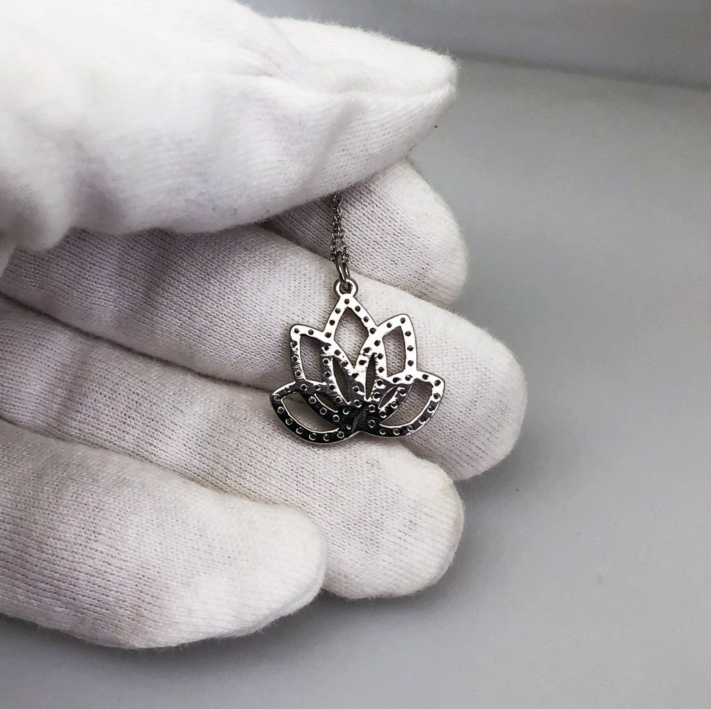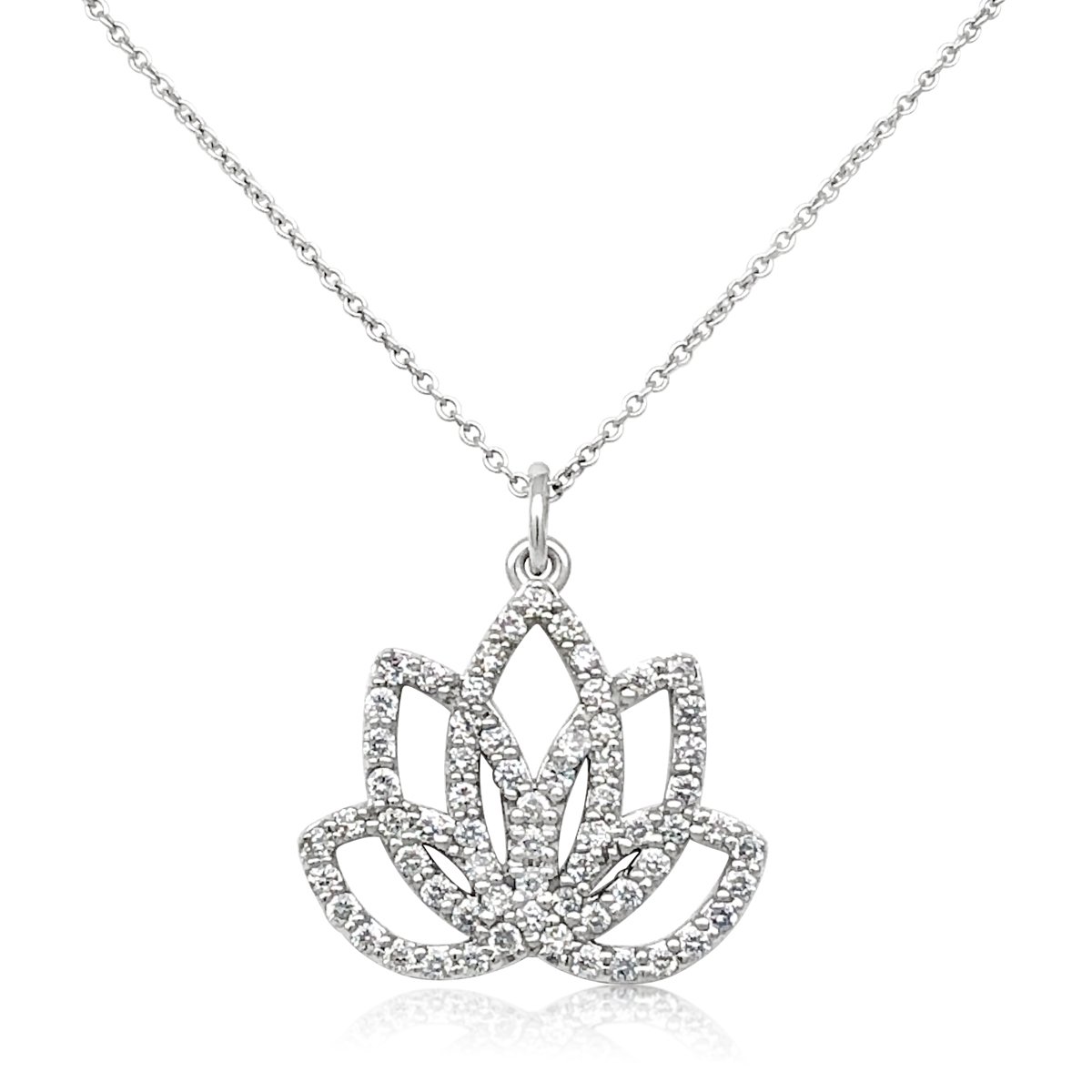 14 K White Gold Lotus Flower Pendant Comprised of 65 Natural Round Diamonds