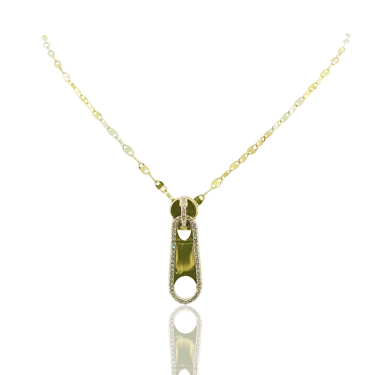 14k Tri-Gold Mariner Chain With Fancy Zipper Pendant